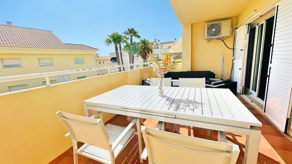 Duplex Apartment at about 200 meters of the beach of Montañar I and all amenities, such as restaurants and supermarkets. It consists of 3 bedrooms, 2 bathrooms, a living/dining room, kitchen, 2 terraces and communal pool. PETS NOT ALLOWED. AT-427452-A