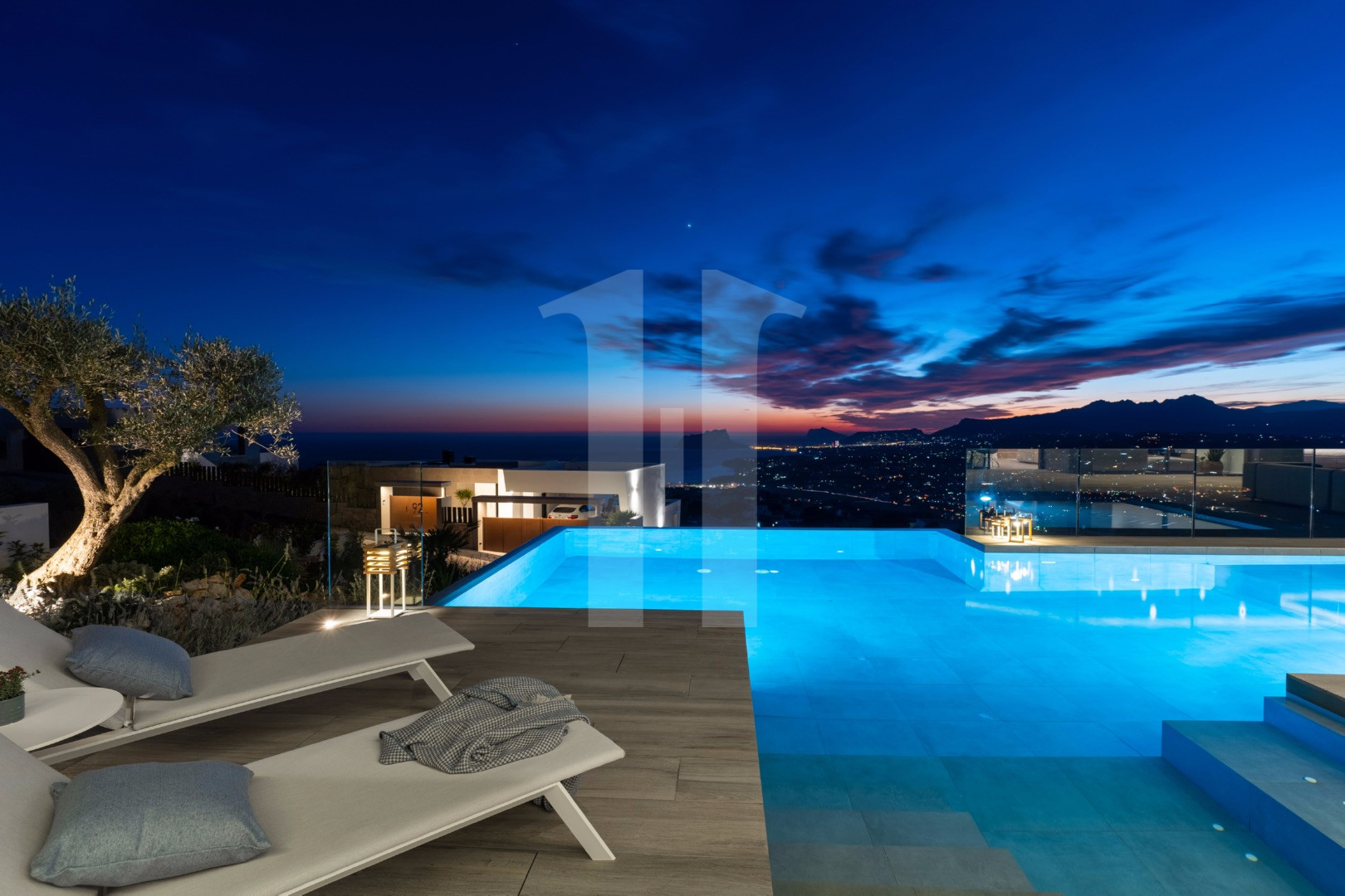 Villa Veleta, a new icon villa of the Residencial Jazmines, 21st century design fully integrated into the exclusive environment of the Cumbre del Sol Residential Resort, built on a plot of 1,168m², with a magnificent southwest orientation, which allows us to enjoy impressive sunsets.