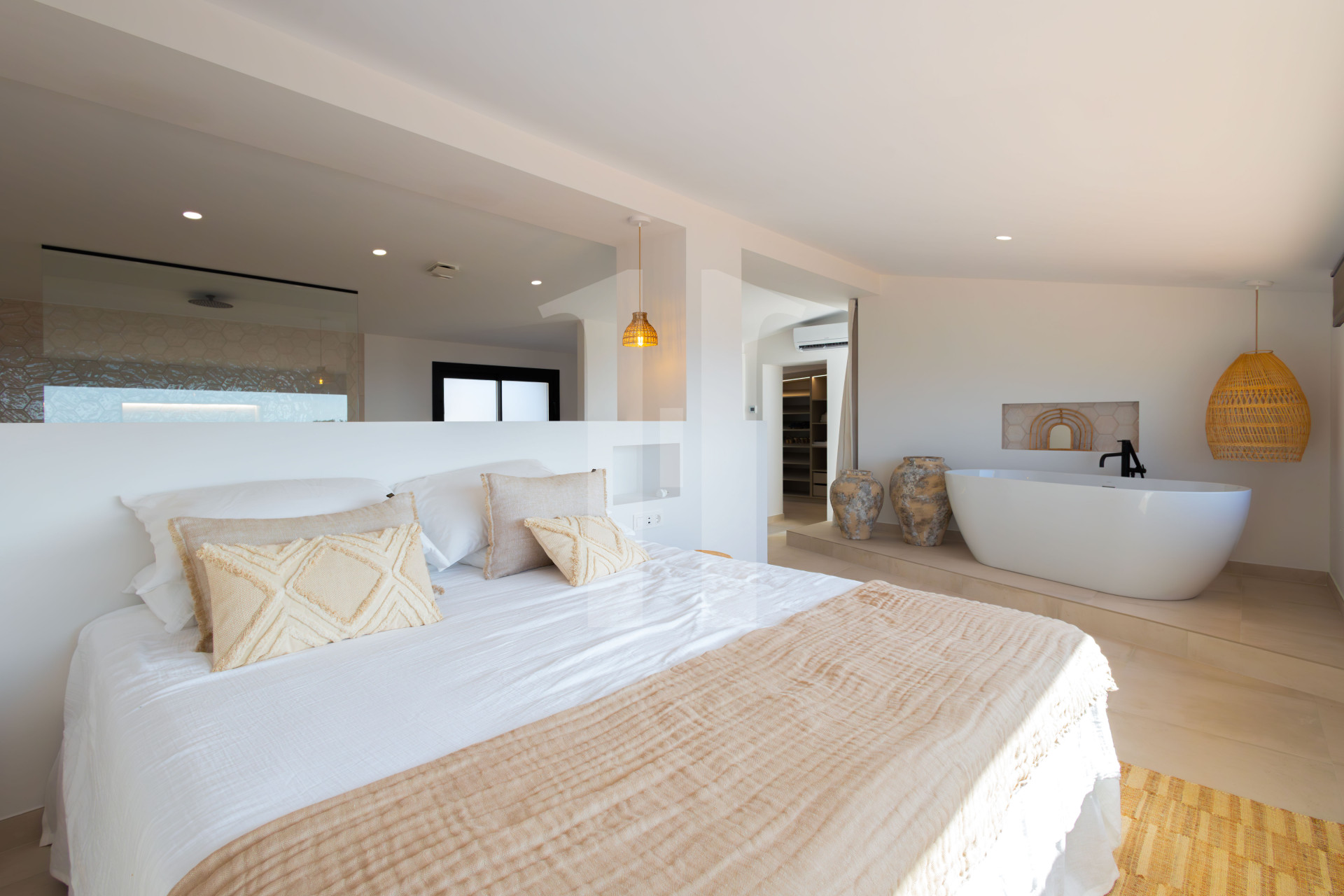 The master bedroom has a private terrace, the perfect place to watch the sunrise and start the day admiring the beauty that only the Costa Blanca can offer, as well as a bathtub and shower inside the room for added comfort.