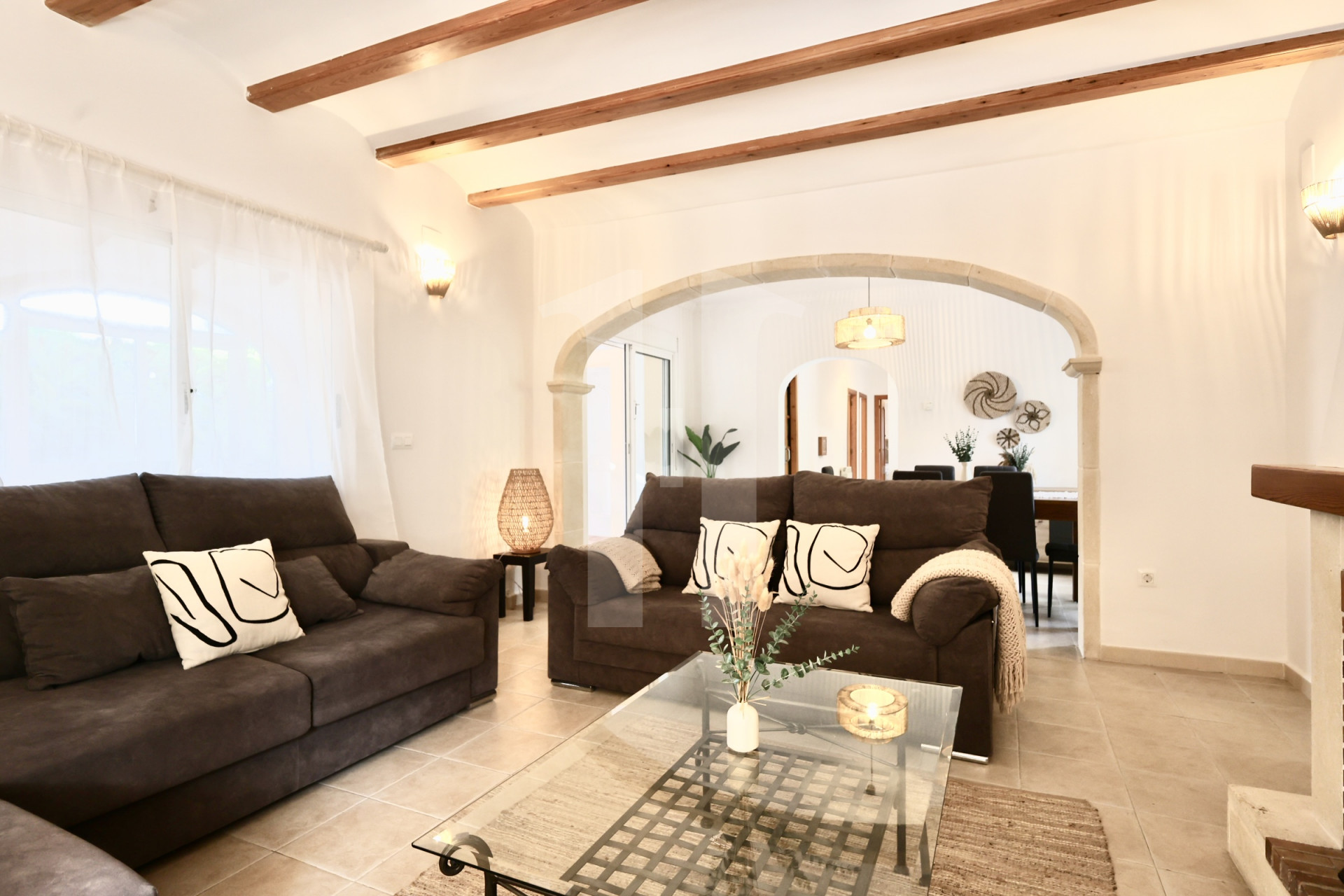 Discover this exclusive villa for sale in Javea, within walking distance of the Arenal beach and surrounded by all essential amenities such as restaurants and supermarkets. Set on an extensive plot of 1,000 square meters, this unique property is distributed over one floor, offering a perfect combination of elegance and comfort.