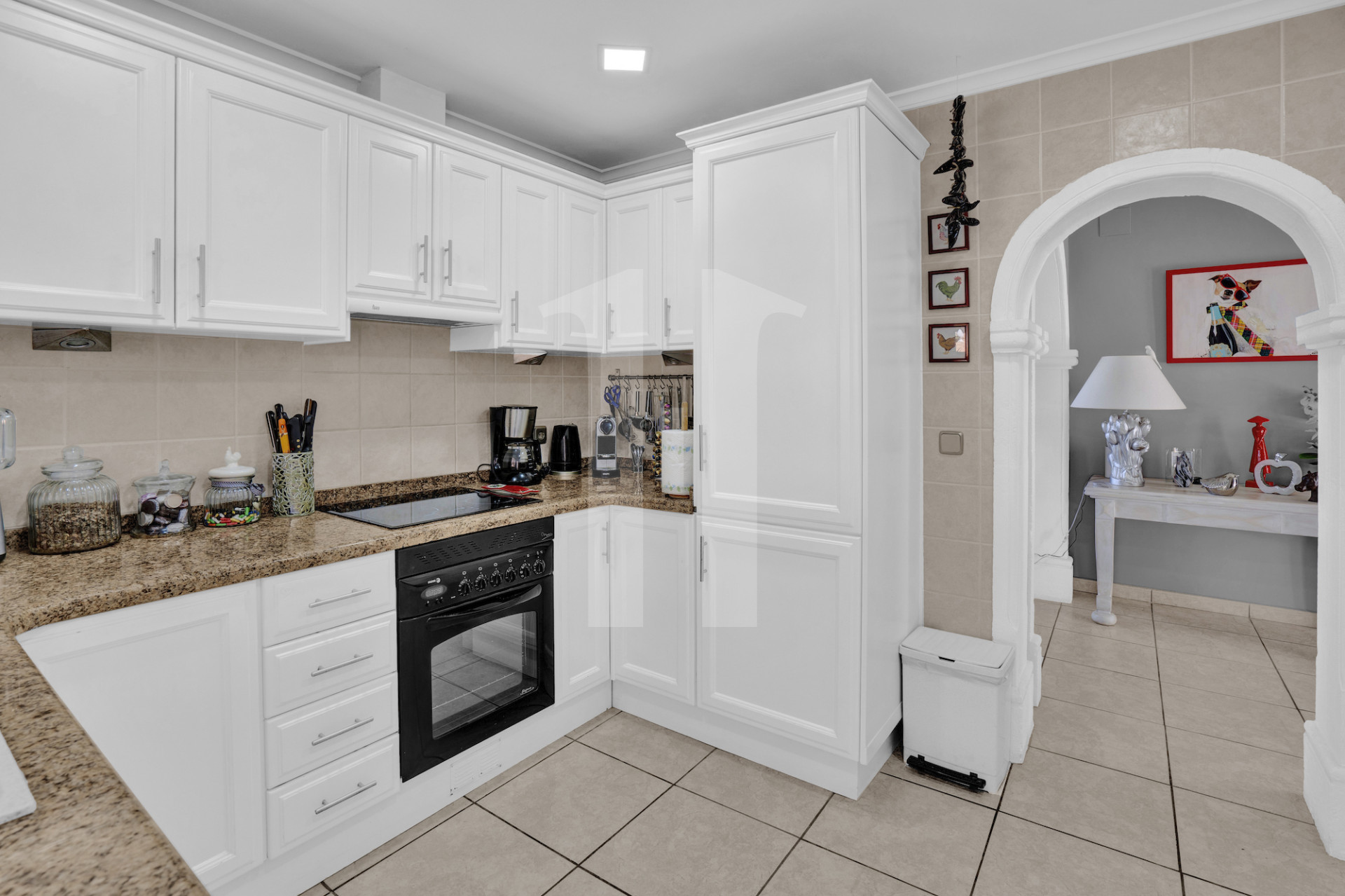 Fully equipped kitchen opening onto a covered terrace, ideal for outdoor living.