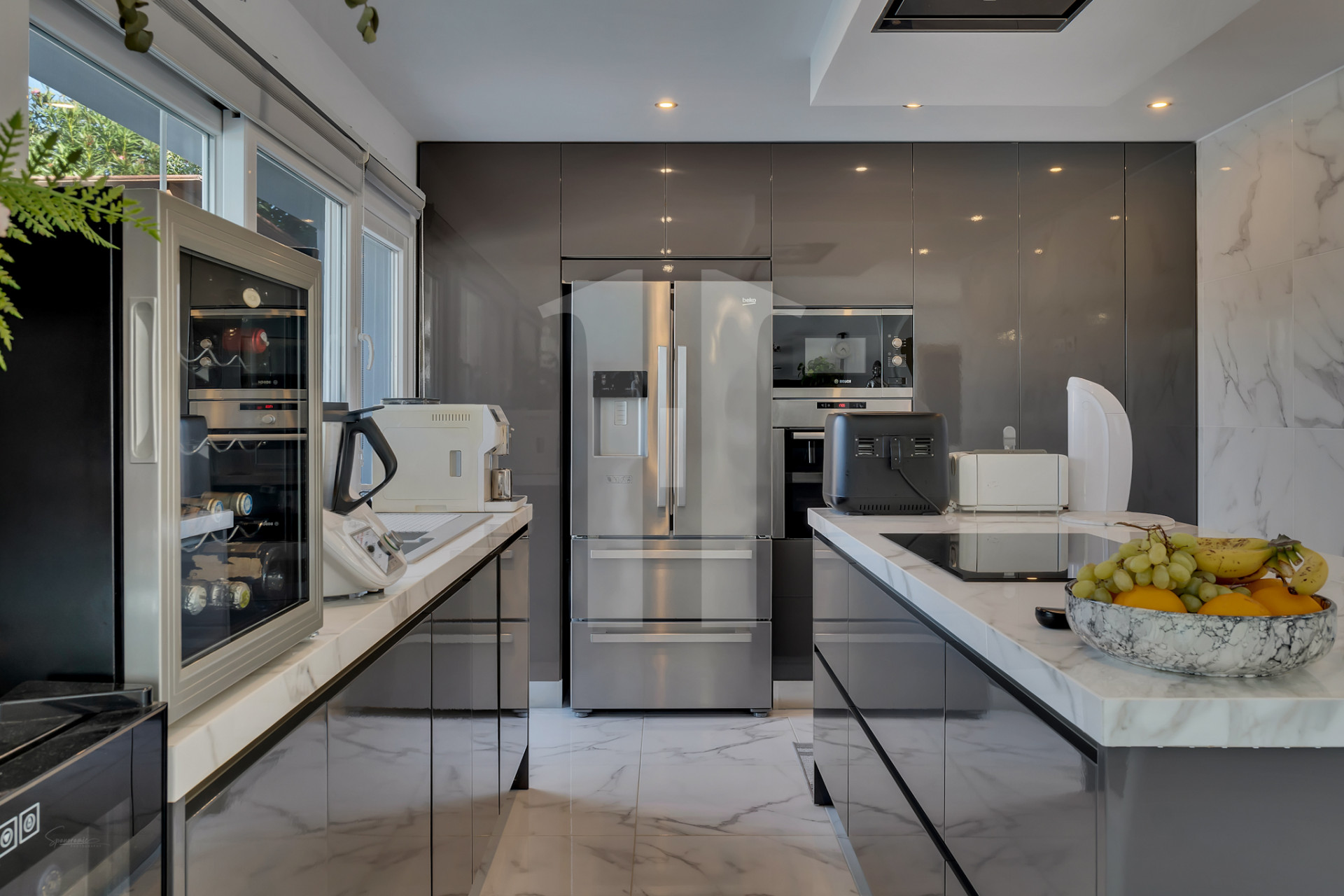 kitchen, central heating with a pellet boiler, and air conditioning in the living room