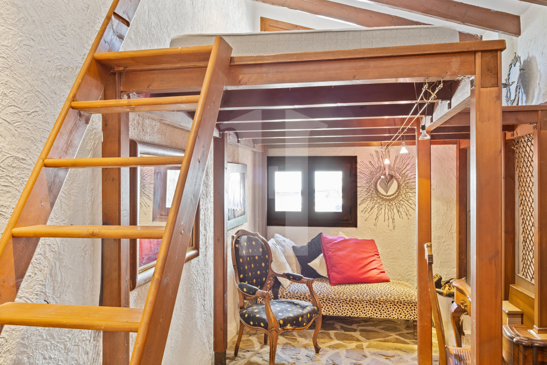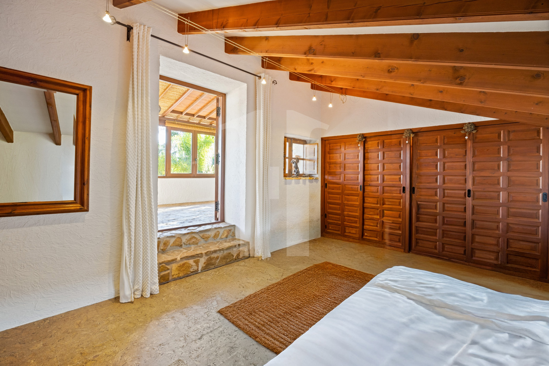 The master bedroom is located on the upper floor and has direct access to a large enclosed