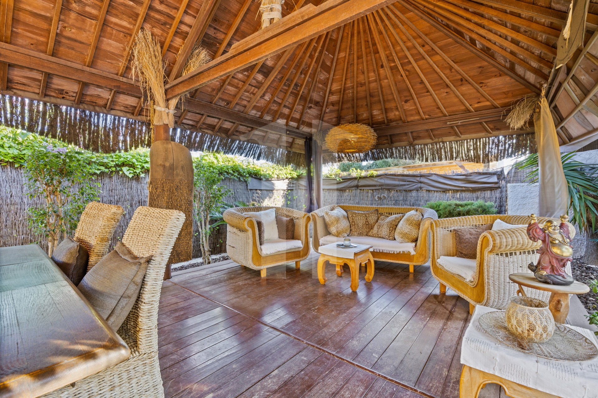 Balinese-style chill-out area, a swimming pool for warm summer days, and multiple terraces