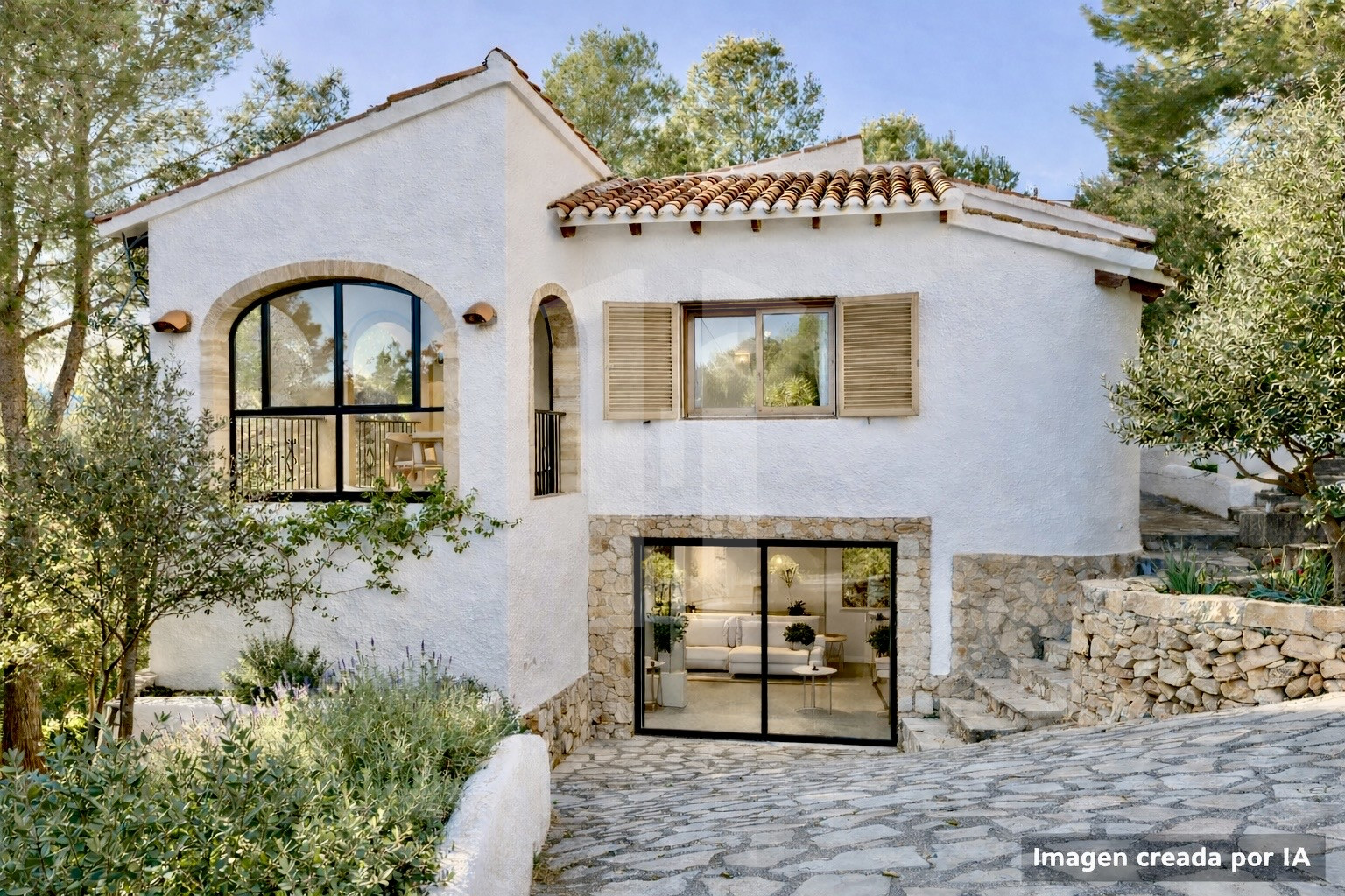 porch perfect for enjoying the Mediterranean weather, and a garage.