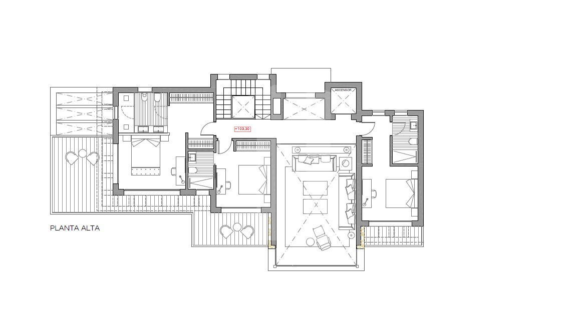 Binnen biedt de woning vier ruime slaapkamers, allen met inbouwkasten en en-suite badkamers, waaronder een elegante master suite met inloopkast. Daarnaast is er een gastentoilet en een handige wasruimte. Het ontwerp combineert hoogwaardige moderne afwerkingen met natuurstenen accenten, waardoor de perfecte balans ontstaat tussen eigentijdse verfijning en traditionele Spaanse charme.