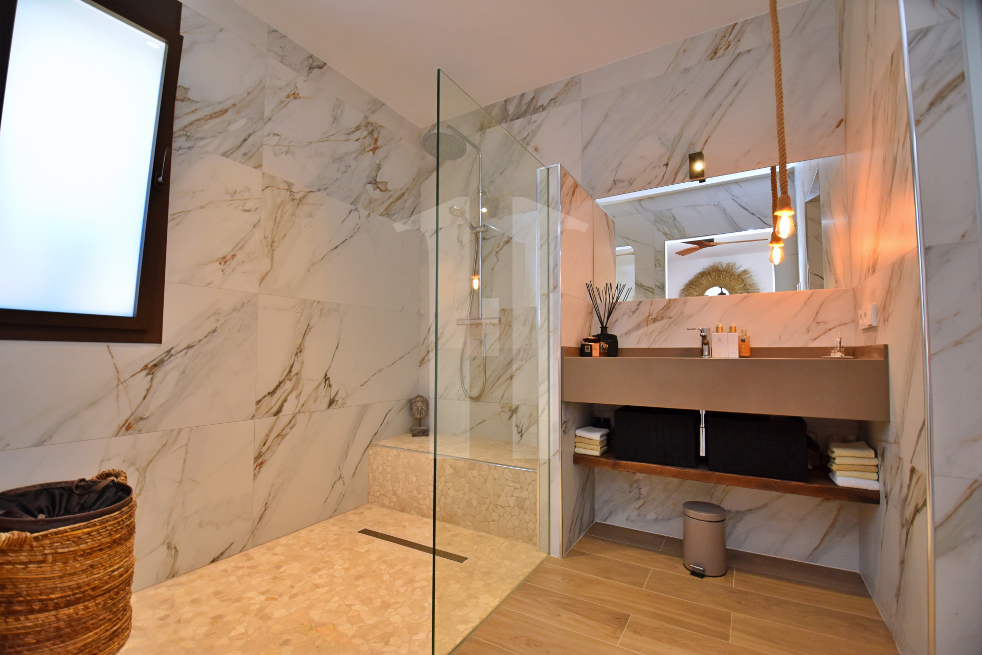 Dit mediterrane pareltje ligt op een perceel van 890 m² en beschikt over een prachtig zwembad, een verwarmde jacuzzi en een zorgvuldig aangelegde tropische tuin. Het terras is ideaal om buiten te eten, te zonnebaden en te genieten van de vredige schoonheid van de natuur.