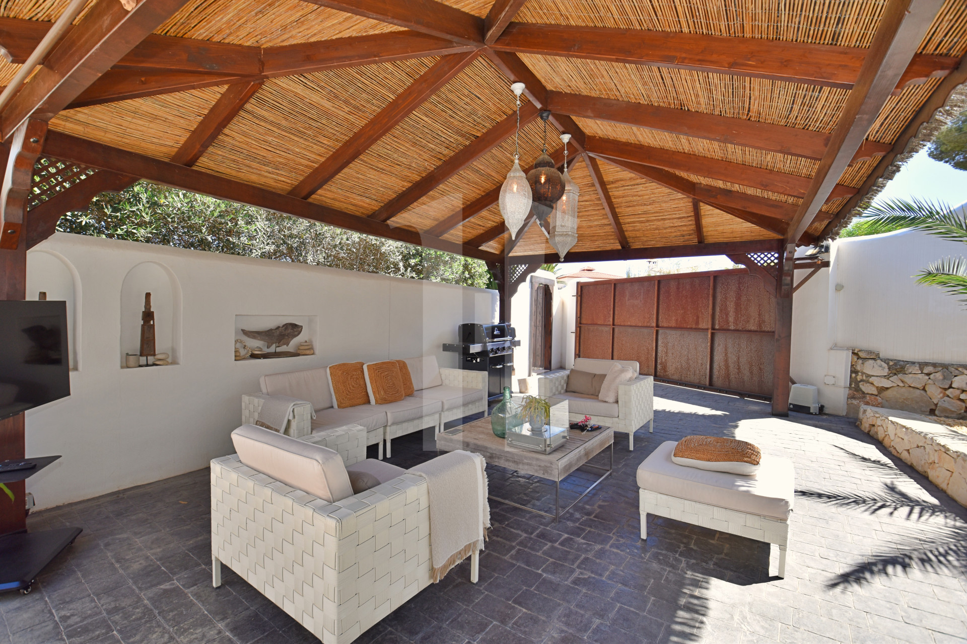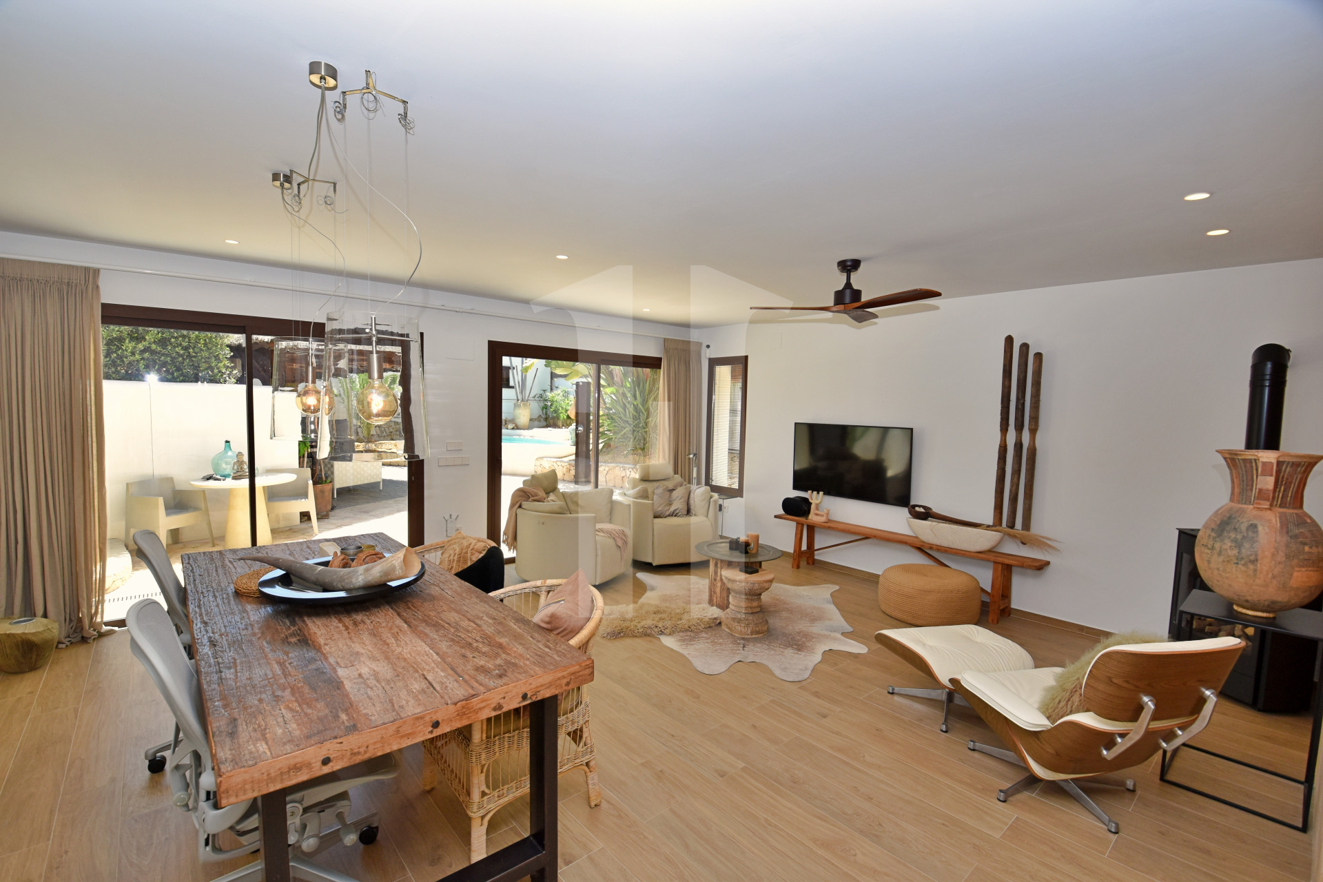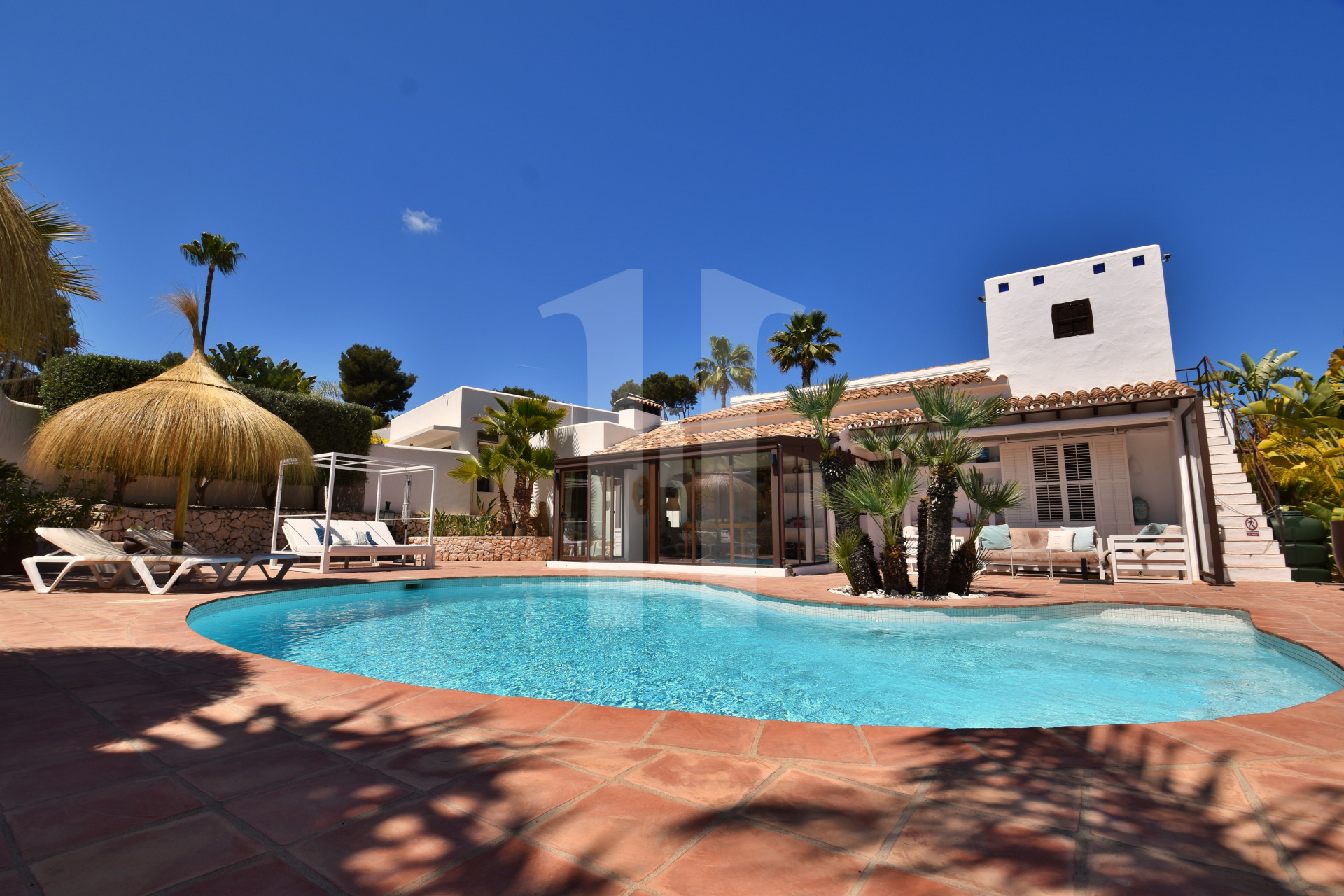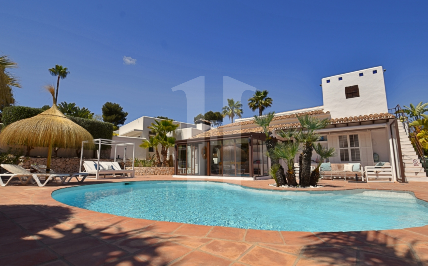 Deze prachtige villa, volledig gerenoveerd tussen 2021 en 2022, combineert op meesterlijke wijze Andalusische charme en de frisheid van Ibiza met een modern, verfijnd design. De exclusieve indeling – bestaande uit twee afzonderlijke gebouwen: een hoofdwoning en een tweede woning – biedt niet alleen verfijnd wonen, maar ook unieke mogelijkheden voor permanente bewoning of een slimme investering.