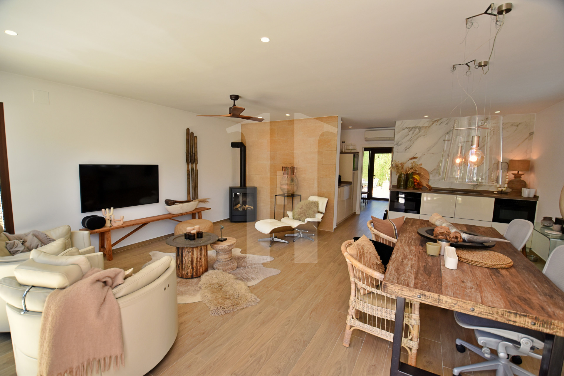 De woning is ontworpen om het hele jaar door te wonen en beschikt over airconditioning, hout- en gashaarden, vloerverwarming en glasvezel. De traploze indeling zorgt voor toegankelijkheid voor mensen van alle leeftijden en niveaus. Met 16 zonnepanelen, een geavanceerd beveiligingssysteem en bewakingscamera’s belichaamt deze villa een moderne, veilige en milieubewuste levensstijl.