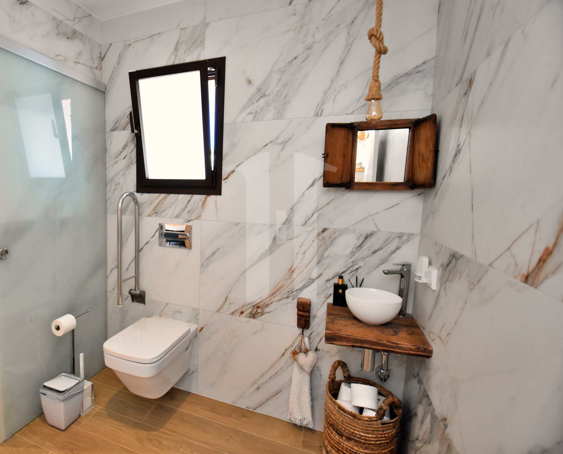 Bij binnenkomst ontdekt u een ware oase van rust en stijl. De begane grond beschikt over een ruime woonkamer, een volledig uitgeruste keuken, een eetkamer met een glazen terras, twee slaapkamers met eigen badkamer en een gastentoilet met wasruimte. Elk element is zorgvuldig ontworpen om privacy en luxe in perfecte harmonie te bieden, waardoor een ideale setting ontstaat voor zowel ontspanning als een sociaal leven.