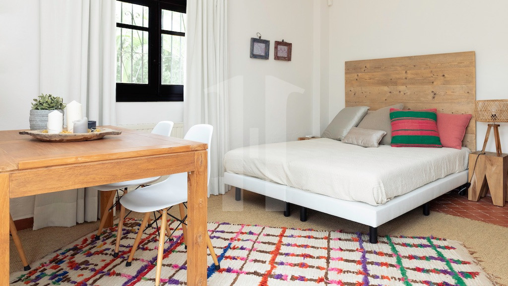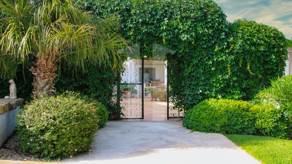 Entrada con mucho encanto. Subiendo unos escalones, se accede al vestíbulo central con galería. Todo el espacio está decorado con gusto en tonos arena y blanco. Elegante es la escalera que conduce a una robusta puerta doble de madera. El vestíbulo, luminoso y abierto, da acceso a varias habitaciones. En todas partes, encontrarás el mismo suelo de hermosas baldosas de color arena que complementa de maravilla las paredes interiores blancas (enlucidas).
