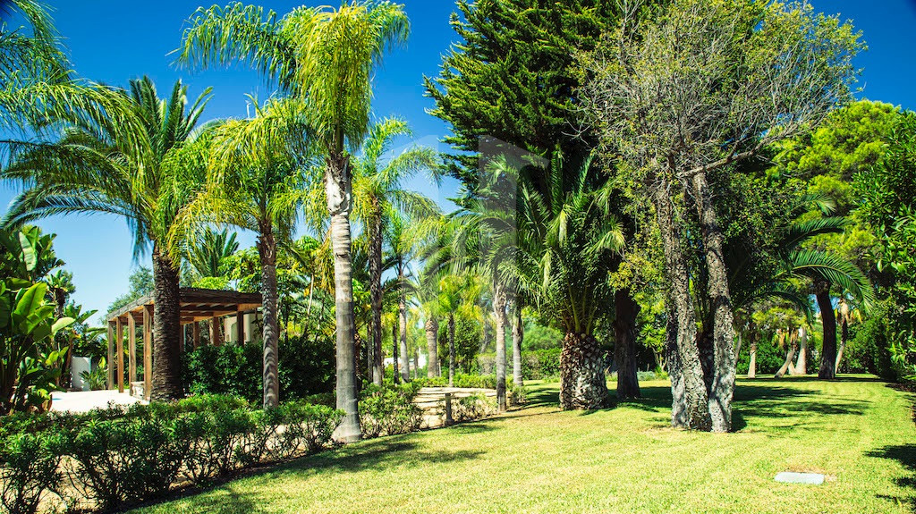 Ya hemos mencionado las impresionantes palmeras. Con los diversos árboles frutales de la extensa parcela que rodea la mansión, la imagen española es completa. Limones, naranjas, higos, granadas. "Recoger naranjas con los nietos les encanta. También es muy especial, por supuesto. Y de la cosecha de limones de nuestro propio huerto, hacemos limoncello todos los años".