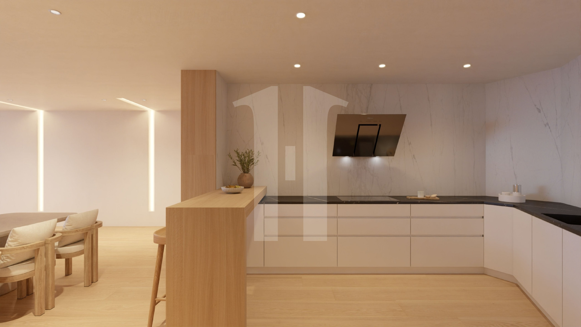 La cocina está equipada acorde a la categoría y calidad de toda la vivienda, con electrodomésticos de la firma Miele, muebles lacados en alto brillo y una espectacular isla central. El salón comedor es la estancia principal de esta vivienda, más de 63m² que albergan varios ambientes delimitados por una exquisita iluminación, dispone de pantalla- proyector que lo convierten en una maravillosa sala de cine, un salón luminoso desde el cual se accede a una fantástica terraza de más de 53m2 con un espectacular porche, jacuzzi y fantásticas vistas al mar.