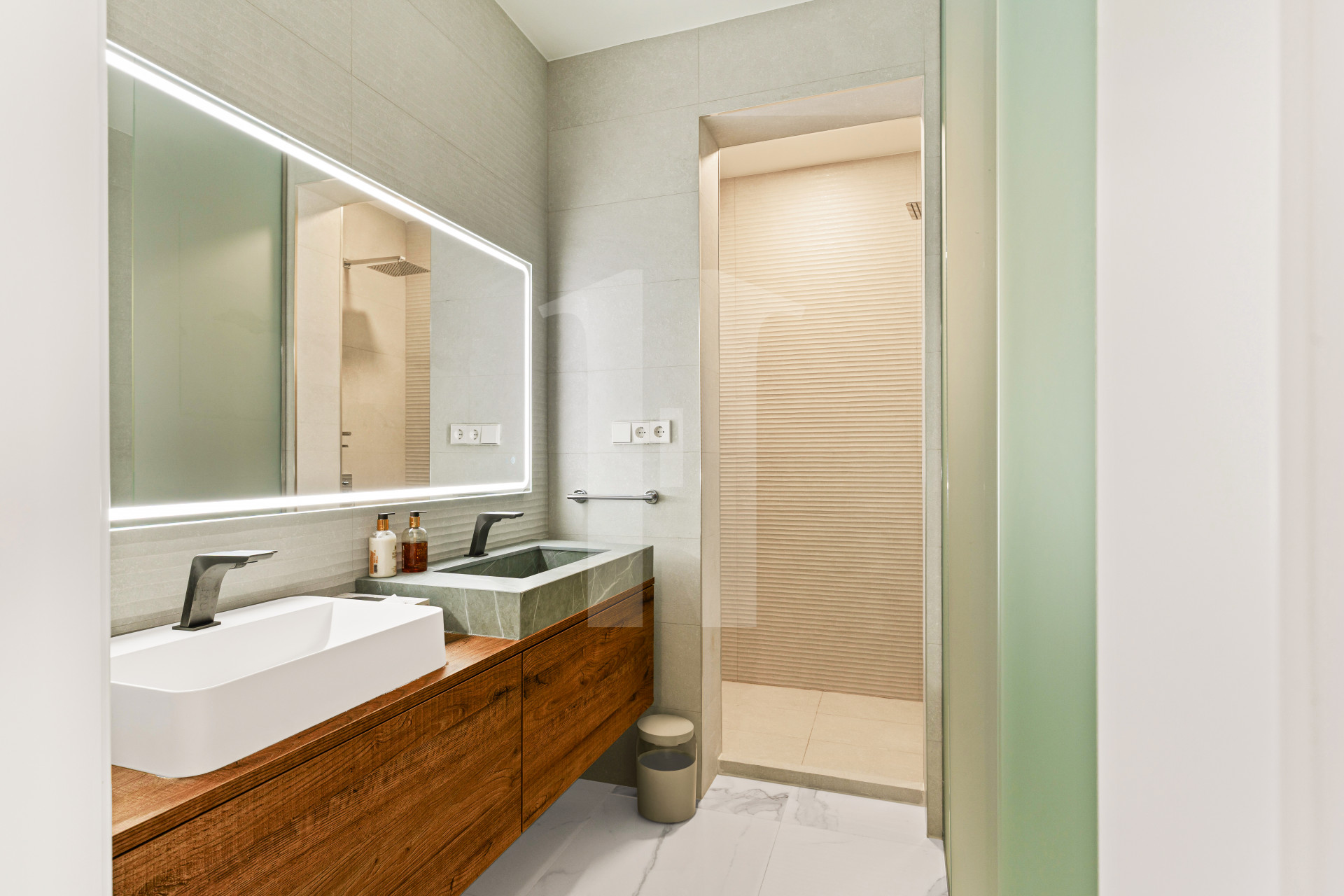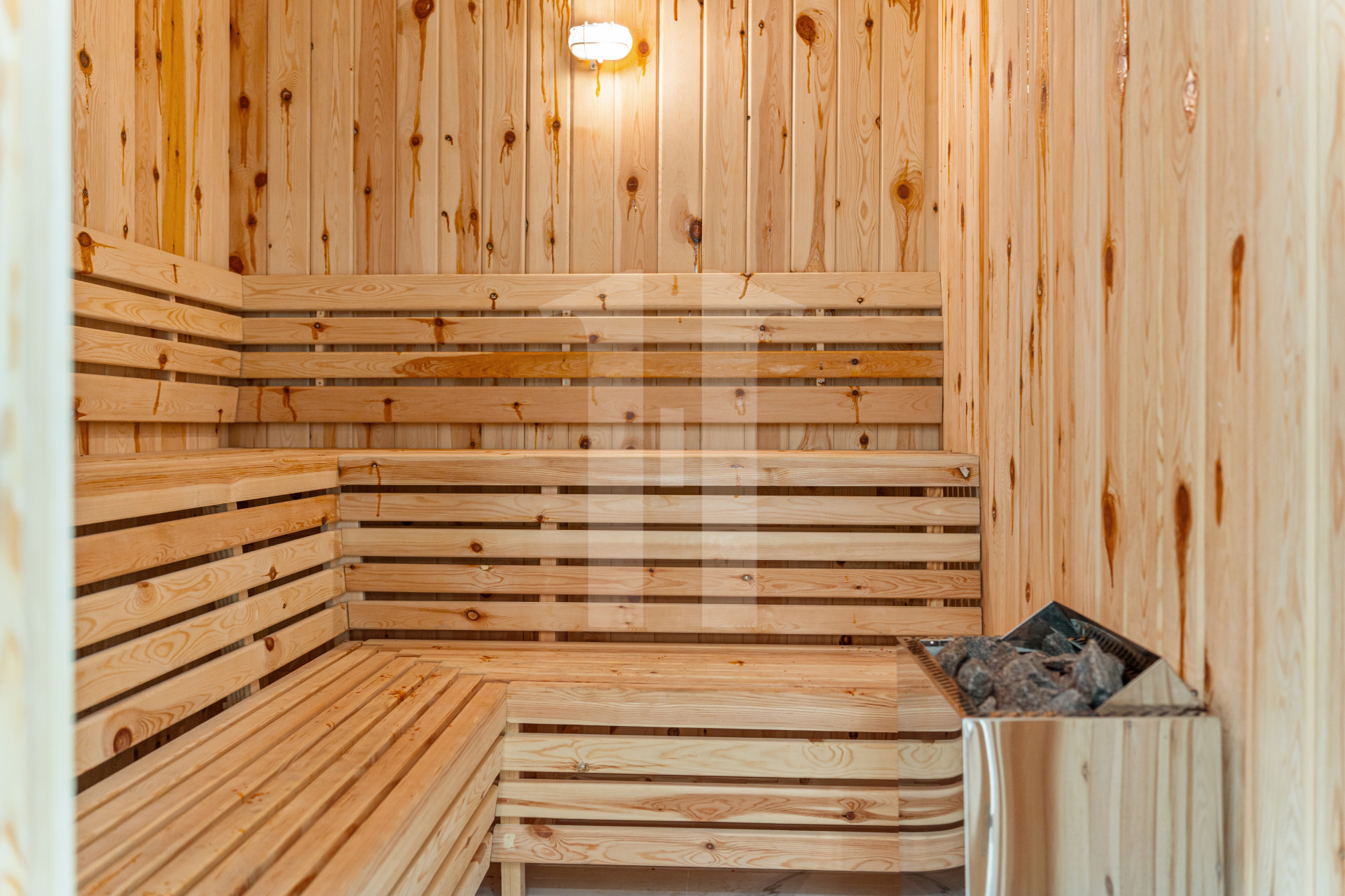 El nivel inferior está dedicado al bienestar y el ocio, con piscina interior climatizada, jacuzzi, sauna, gimnasio, sala de juegos, bar y patio inglés con luz natural.