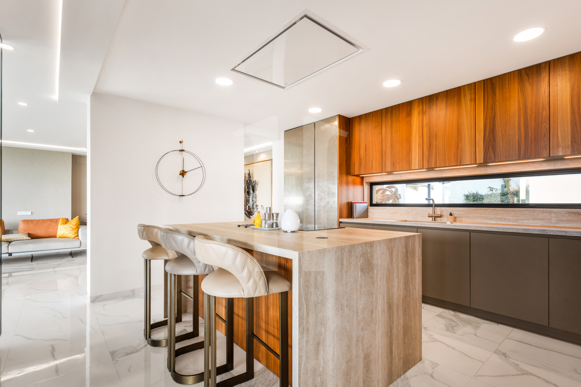 El exterior completa esta experiencia con una piscina infinita climatizada, cocina exterior, jardines mediterráneos y vistas sin obstáculos gracias a barandillas de cristal templado.