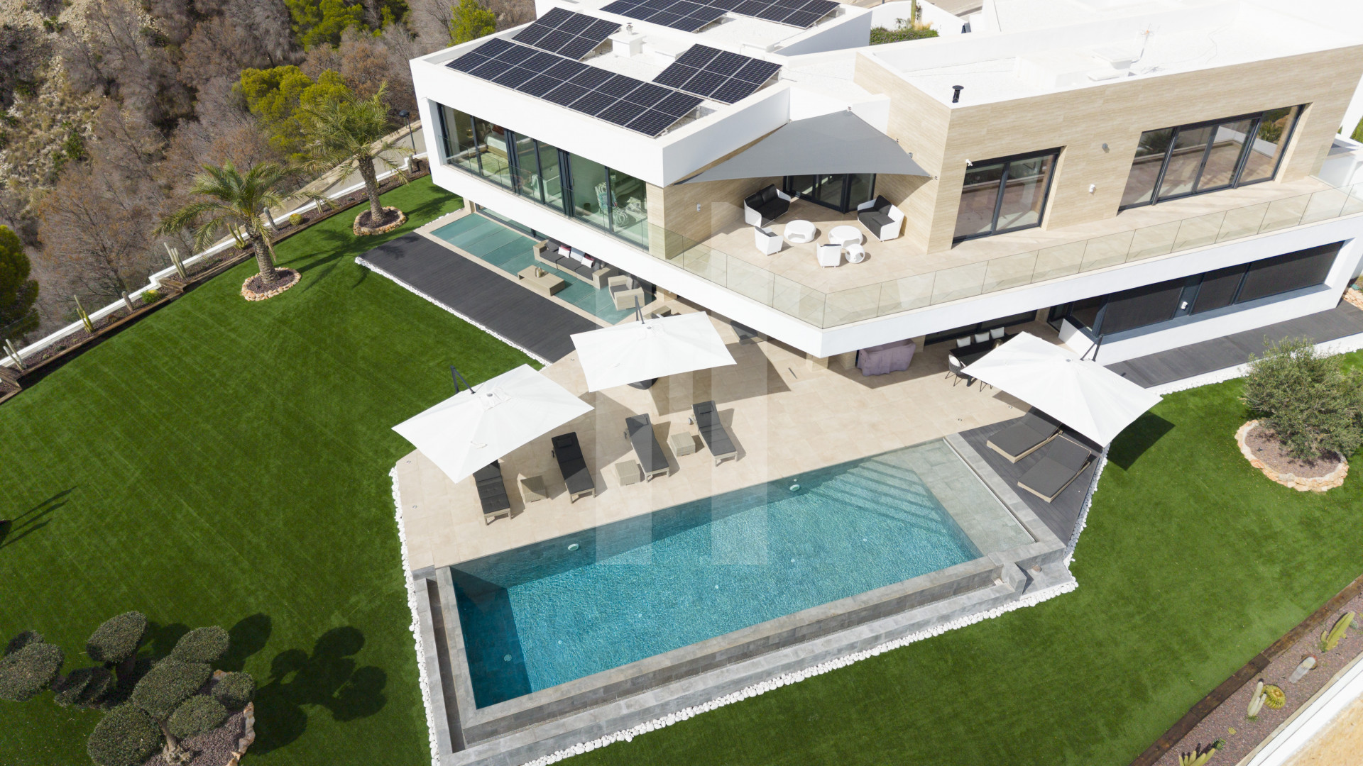 Villa Eclipse es una residencia vanguardista y de diseño impecable situada en una parcela llana de Altea La Vella, con vistas panorámicas al mar, la bahía de Altea, Benidorm y la Sierra de Bernia. Su arquitectura combina líneas puras, materiales nobles y tecnología avanzada, ofreciendo privacidad, eficiencia energética y sostenibilidad gracias a su sistema antisísmico, paneles solares y doble aerotermia.
