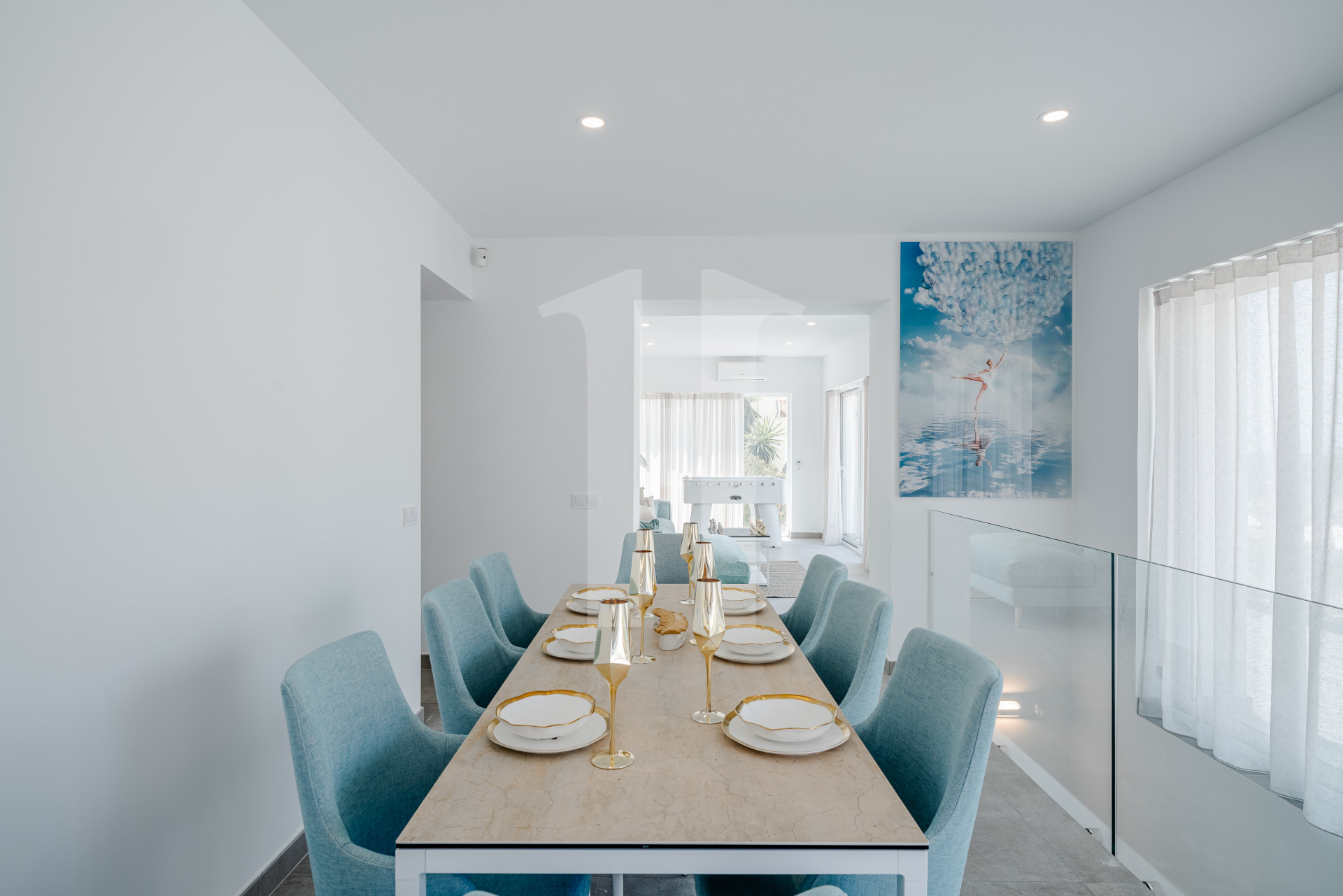 La villa cuenta con cuatro amplios dormitorios y tres elegantes baños, proporcionando un espacio generoso tanto para la vida familiar como para recibir invitados. Cada estancia ha sido diseñada pensando en la funcionalidad y el estilo, creando un entorno cálido y acogedor.