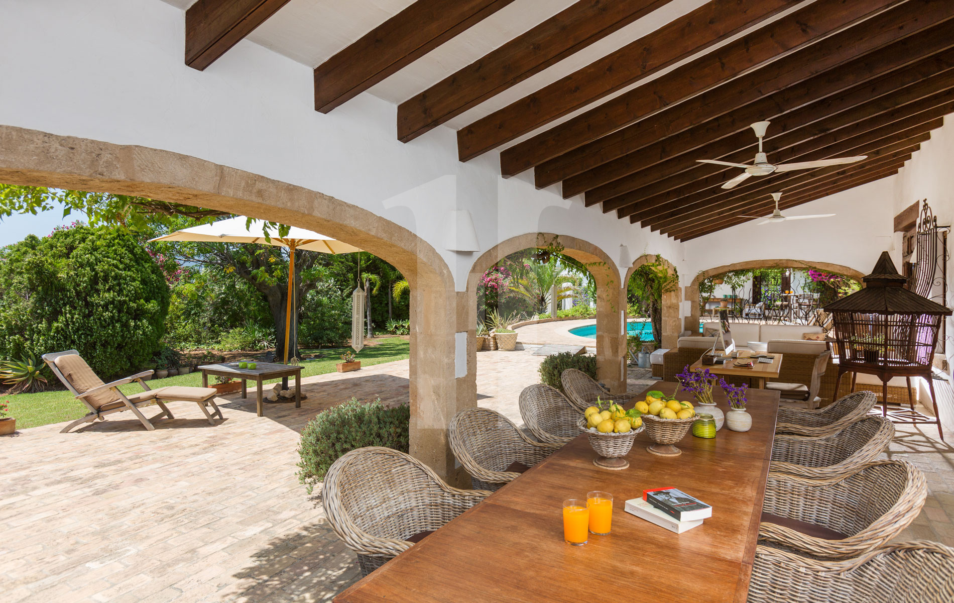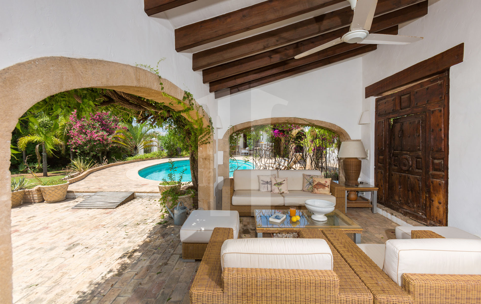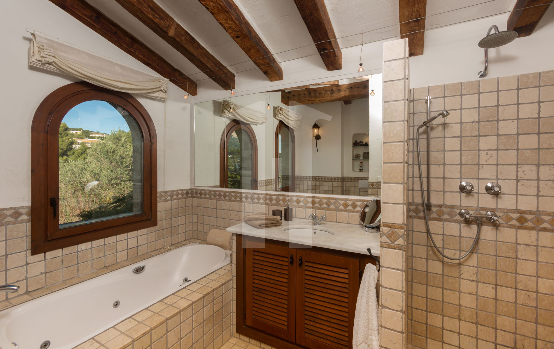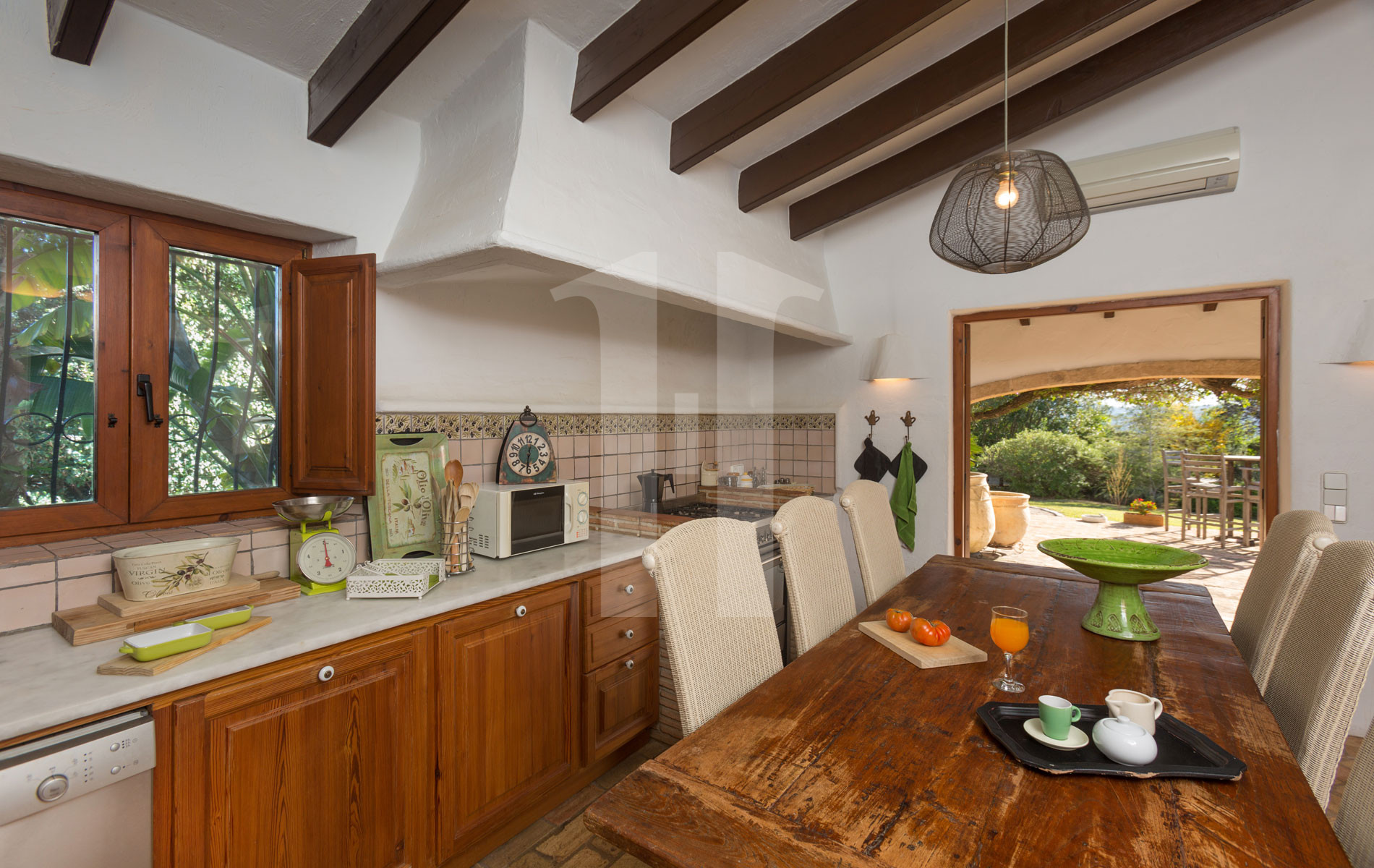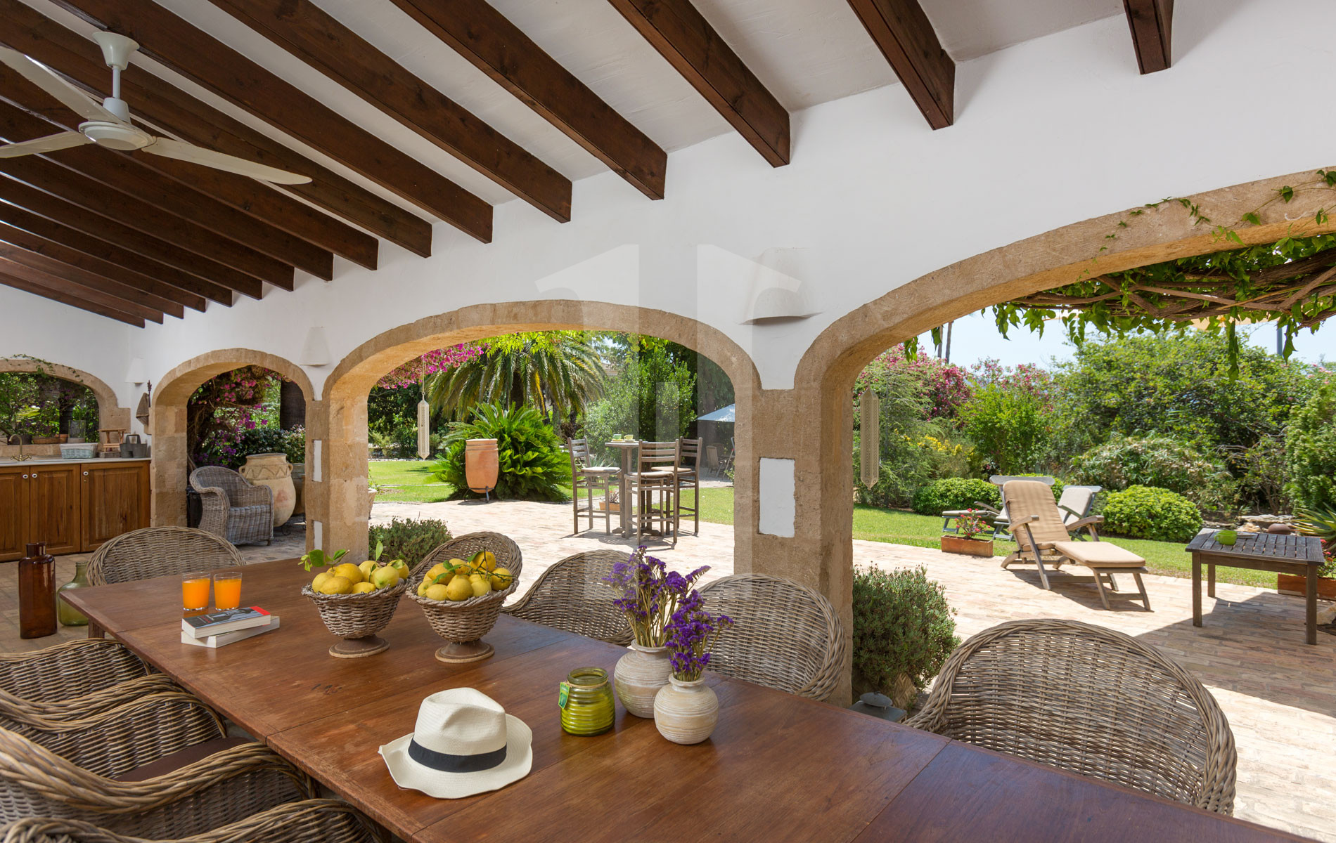 La vivienda principal destaca por su refinada arquitectura de inspiración sarracena, albergando una impresionante suite con un baño de diseño excepcional. A su mismo nivel, la casa de huéspedes ofrece un espacio acogedor e independiente, complementado por magníficas zonas exteriores. Entre ellas, una cocina de verano y varias terrazas de estilo mediterráneo invitan a disfrutar de inolvidables momentos al aire libre.