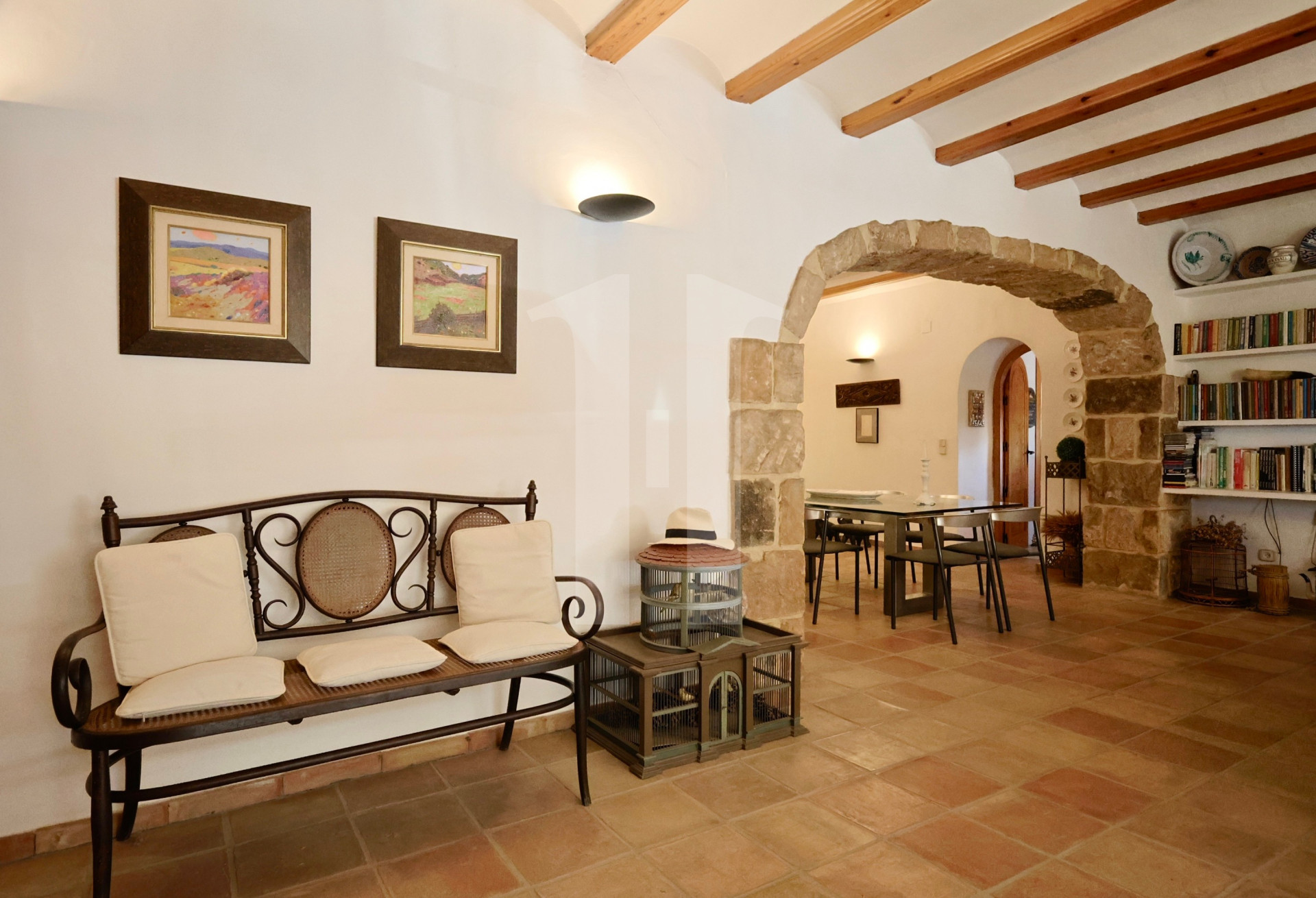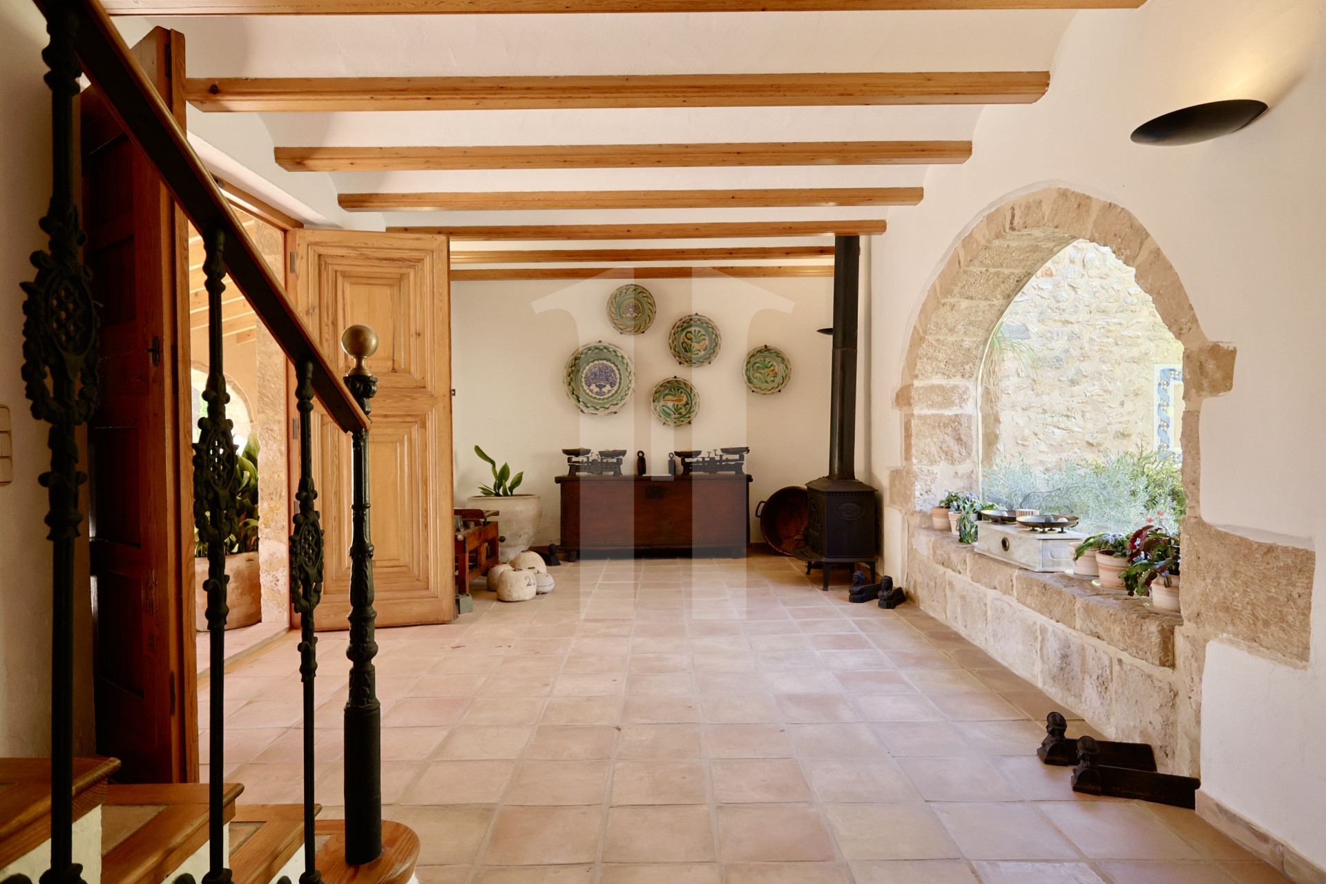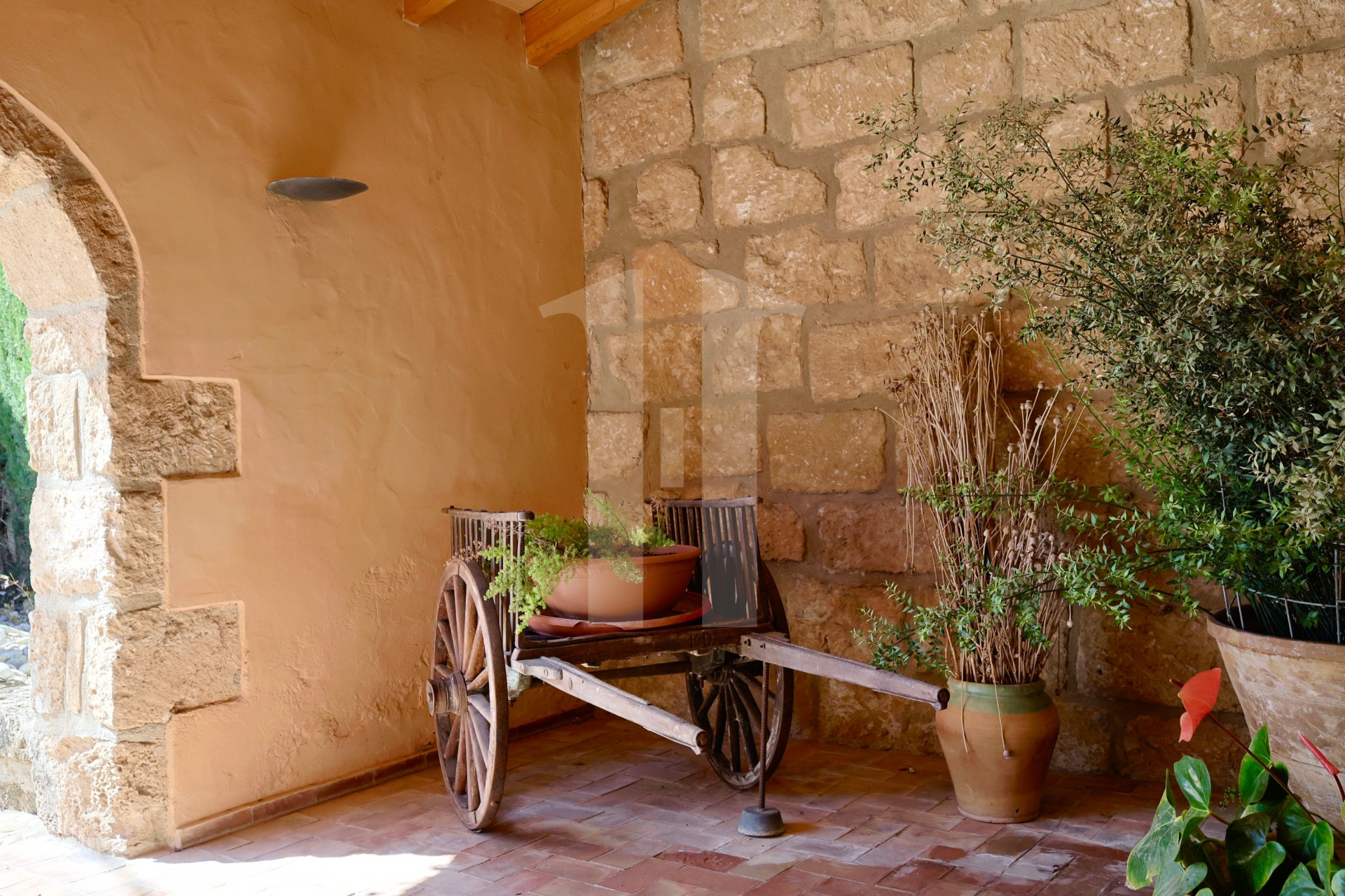 El acceso a la vivienda se realiza a través de un precioso riu rau, construcción típica de la zona, que conduce a un hall abierto a un encantador patio interior. La casa está construida con materiales nobles como piedra tosca, barro cocido y madera, lo que le confiere carácter, autenticidad y una personalidad única. En el interior destacan los suelos de terracota, techos con vigas de madera y paredes de piedra, creando una atmósfera cálida y genuina.