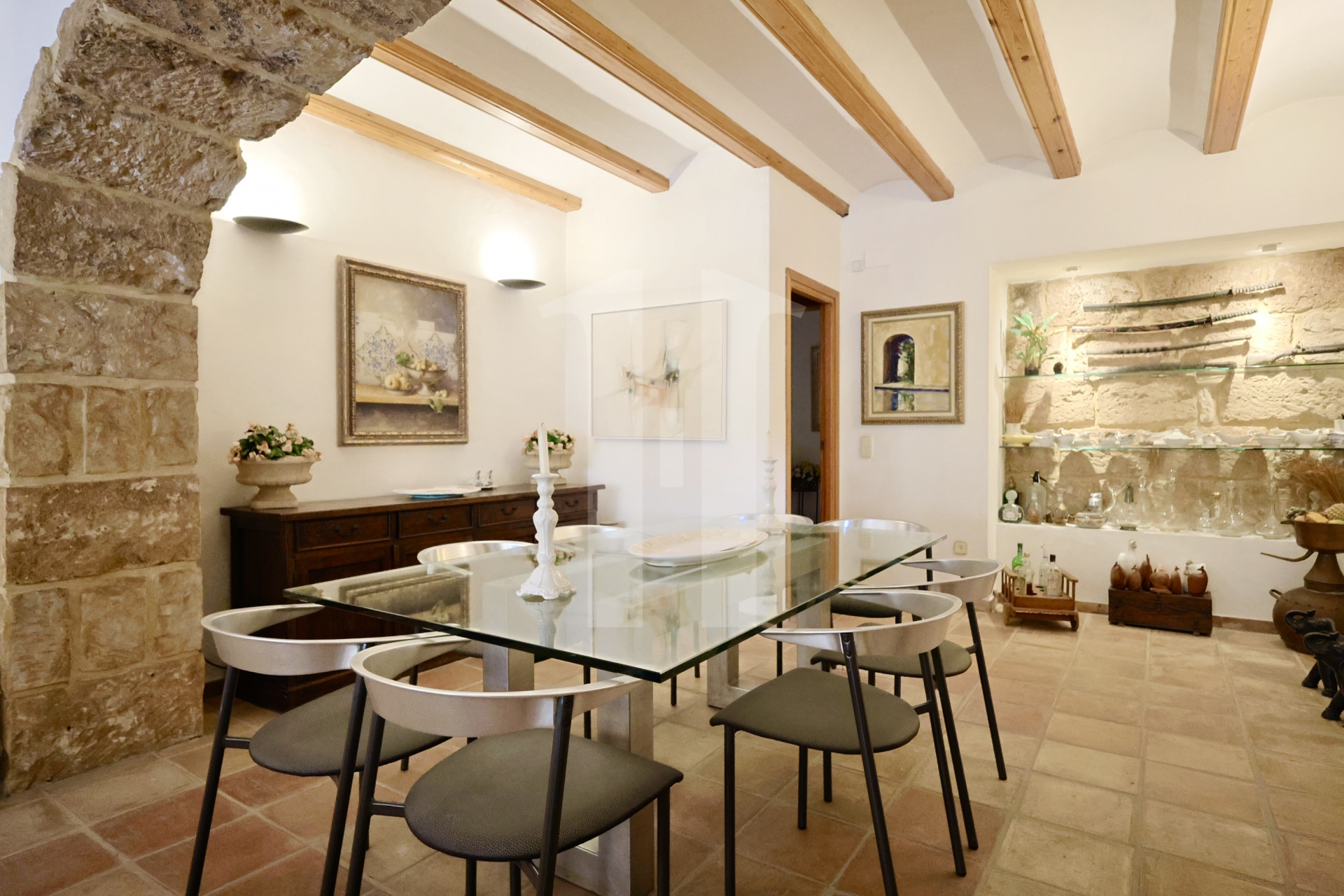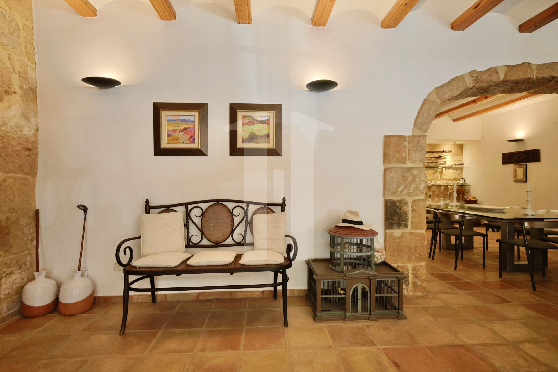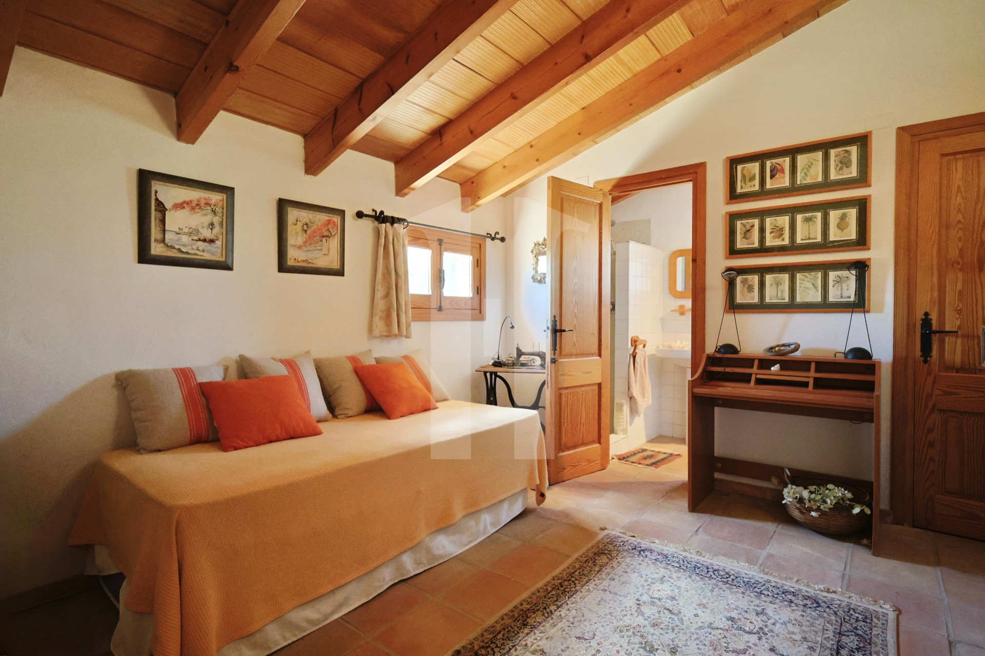 El acceso a la vivienda se realiza a través de un precioso riu rau, construcción típica de la zona, que conduce a un hall abierto a un encantador patio interior. La casa está construida con materiales nobles como piedra tosca, barro cocido y madera, lo que le confiere carácter, autenticidad y una personalidad única. En el interior destacan los suelos de terracota, techos con vigas de madera y paredes de piedra, creando una atmósfera cálida y genuina.