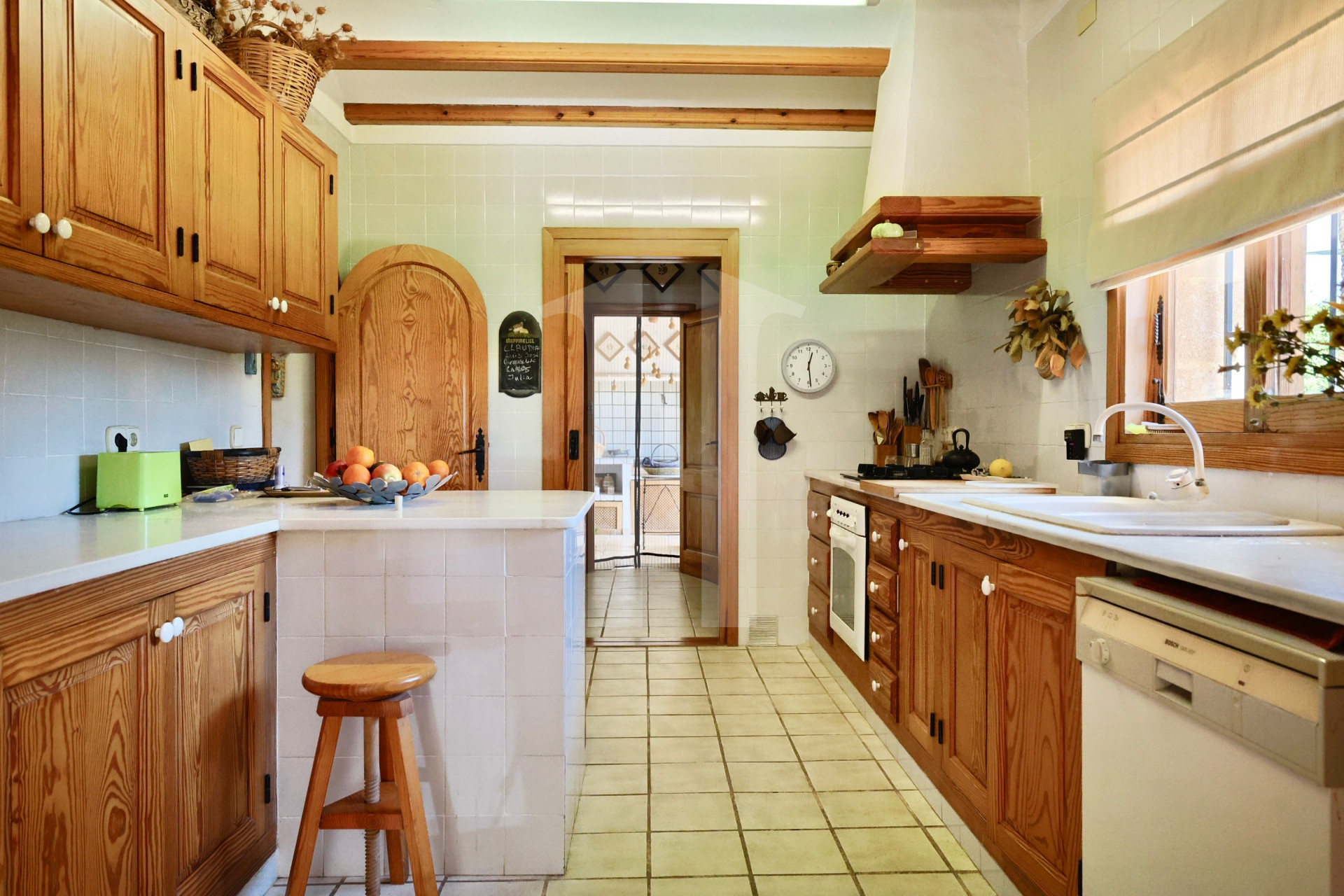 En la planta baja se encuentra un amplio y acogedor salón con chimenea y zona de comedor, una cocina equipada con acceso directo al porche y la piscina, lavadero, dos dormitorios con armarios empotrados y un baño completo.