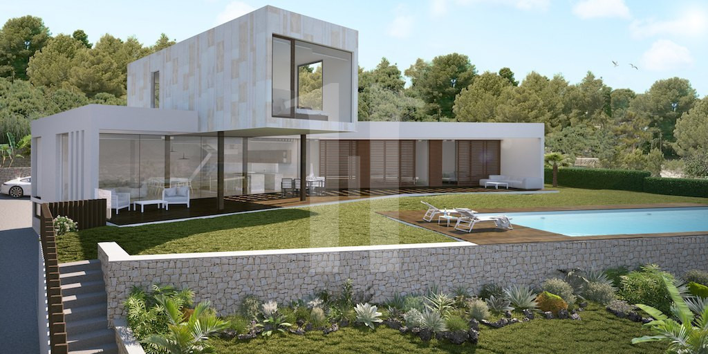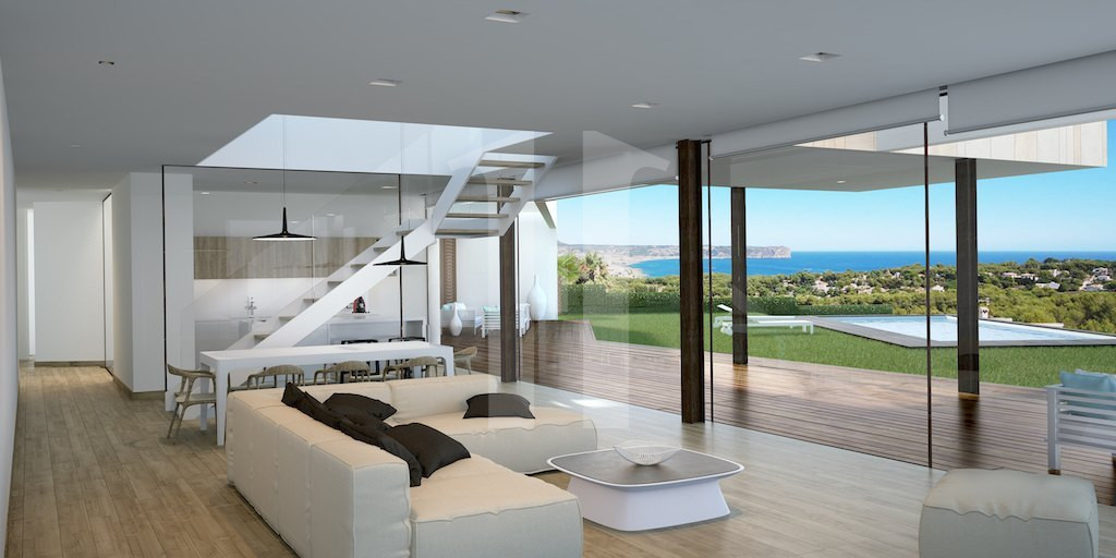 Proyecto de Villa con unas vistas panorámicas de la costa inigualables abarcando desde el Cabo de San Antonio hasta el cabo de la Nao desde todas sus estancias y a solo 5 minutos en coche de todos los servicios y la playa del Arenal. En la planta baja tenemos dos alas: en una se encuentra la zona de día con un gran salón-comedor y una cocina totalmente equipada, y en la otra; el ala de noche, con tres dormitorios dobles con baños en suite.En la planta alta encontramos el dormitorio principal, en suite y con un gran vestidor, que además cuenta con las mejores vistas de toda la casa. El sótano cuenta con una sala multiusos en la que situar una sala de cine, un gimnasio o una bodega. Su magnífico porche cuenta con vistas al jardín, la piscina y el mar. Además toda la villa cuenta con calidades de lujo y la última tecnología: domótica, calefacción central por suelo radiante…