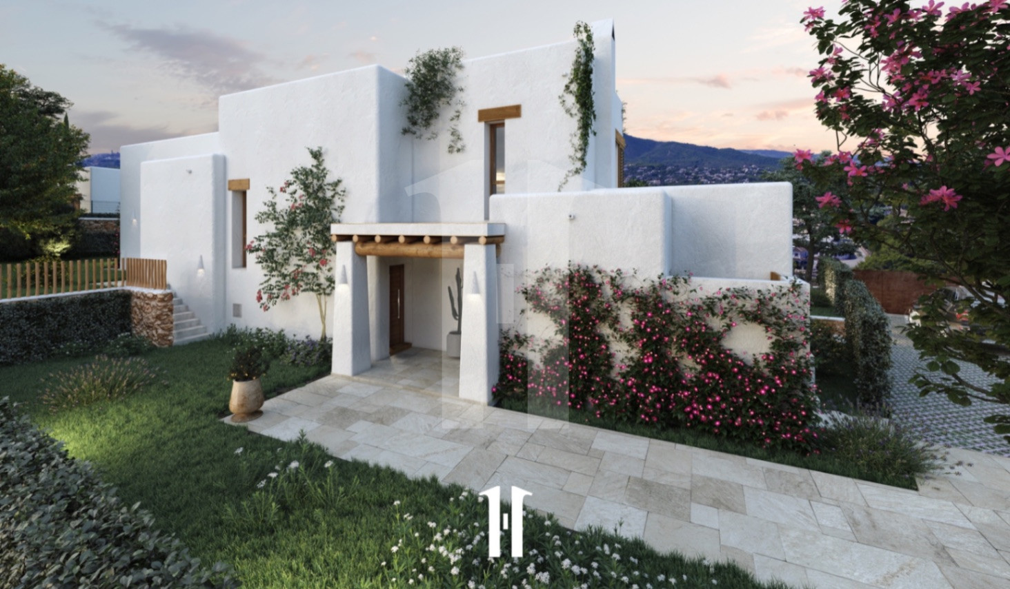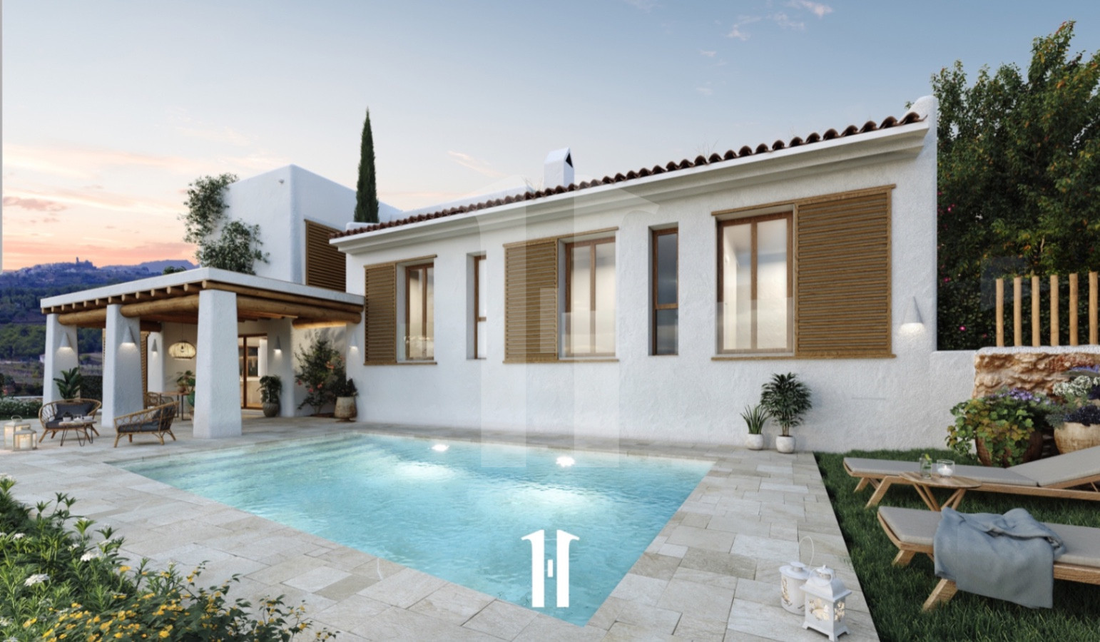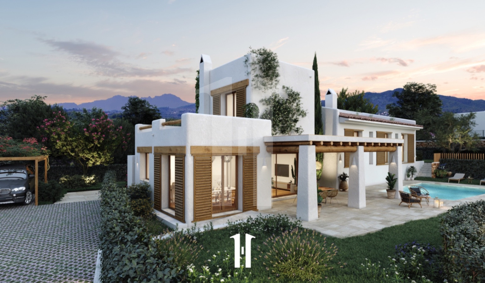 Actualmente en fase de construcción y con fecha estimada de entrega para febrero de 2024, esta impresionante residencia, diseñada con influencias mediterráneas e ibicencas, se distingue por sus líneas suaves y curvas, resaltadas por esquinas redondeadas, vigas de madera a la vista y techos abovedados, que evocan la belleza del paisaje mediterráneo. El techo de tejas de barro y las amplias ventanas con persianas aseguran una generosa entrada de luz natural, creando así un auténtico santuario de tranquilidad.