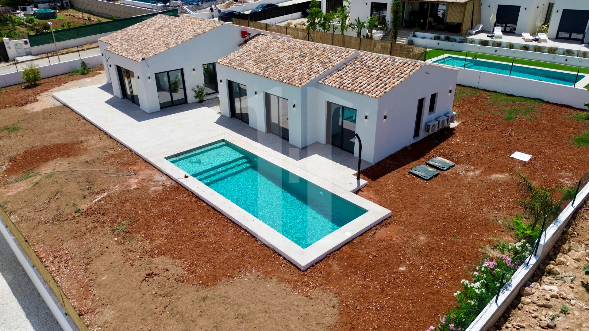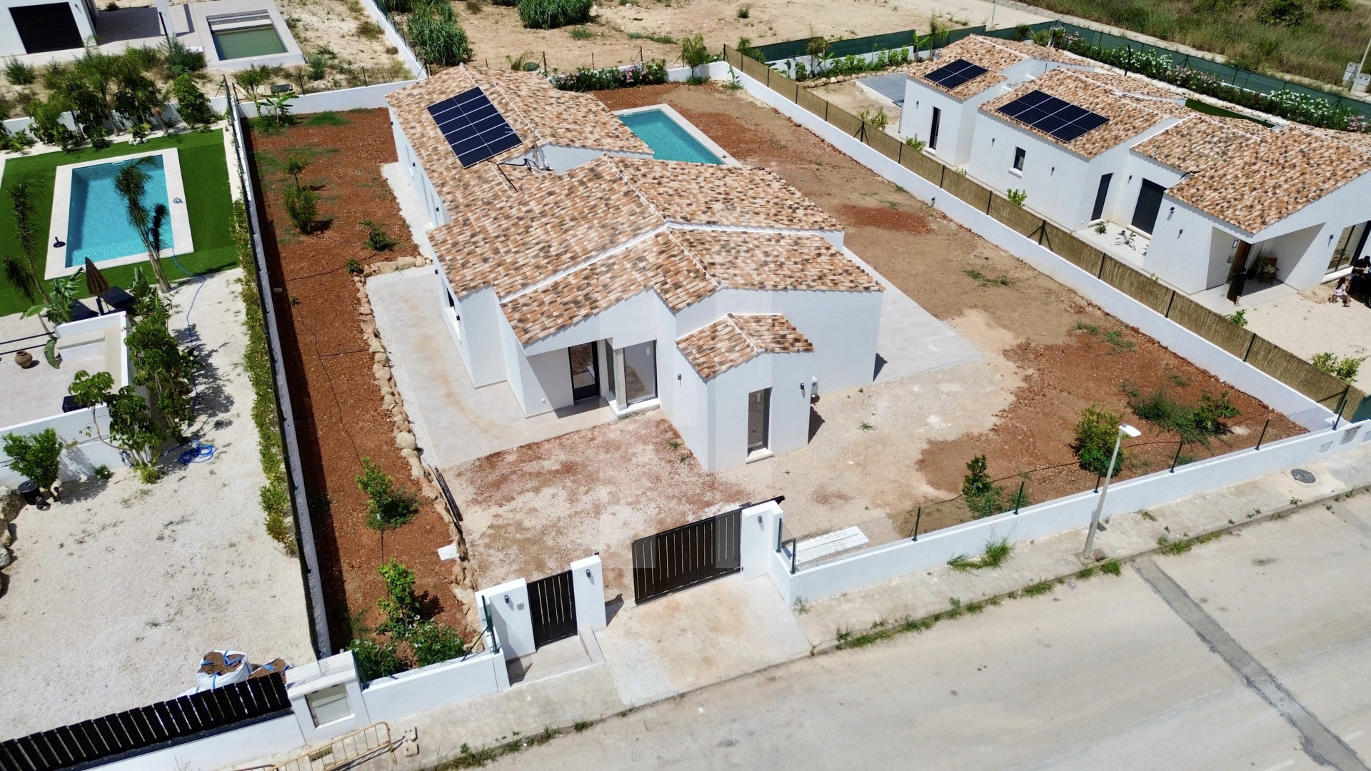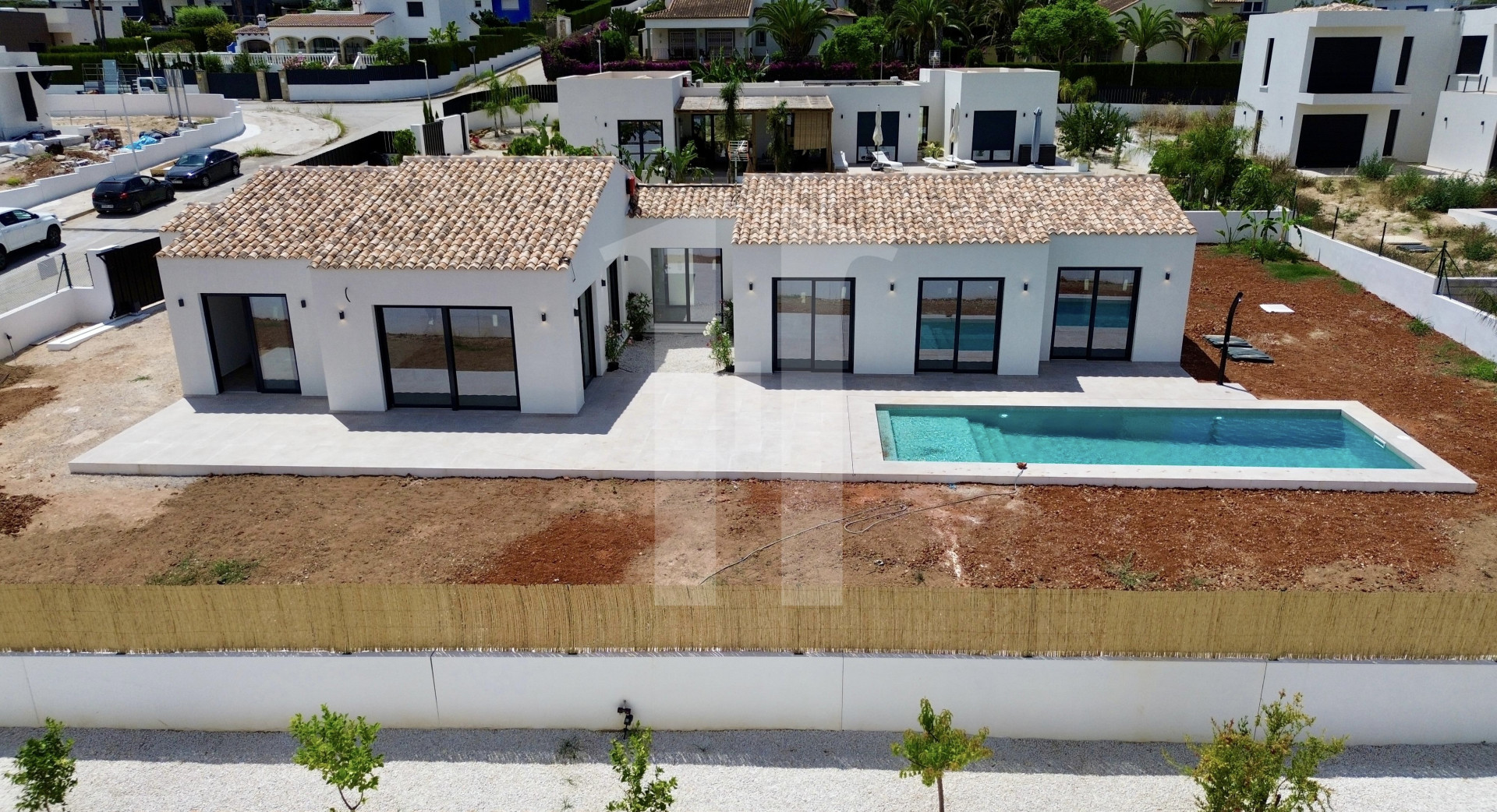 Esta villa se encuentra en una parcela de 1.000 m² en la tranquila zona de Piver, Jávea, a pocos minutos del centro histórico y de la playa del Arenal.