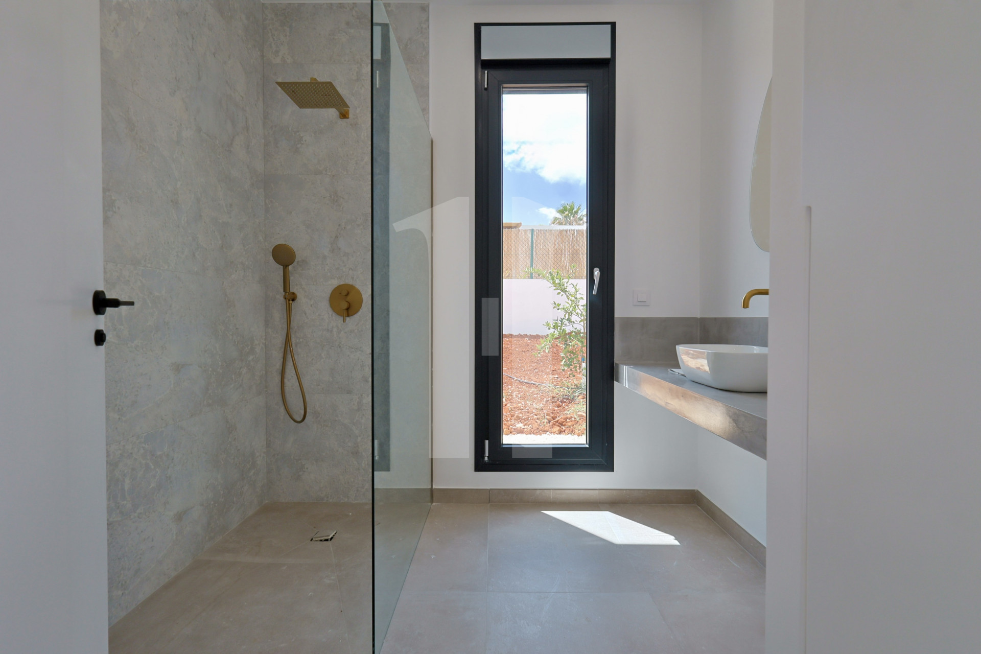 La villa cuenta con cuatro amplios dormitorios, todos con armarios empotrados y baños en-suite de lujo. La construcción se realiza con materiales de la más alta calidad, garantizando durabilidad y confort.