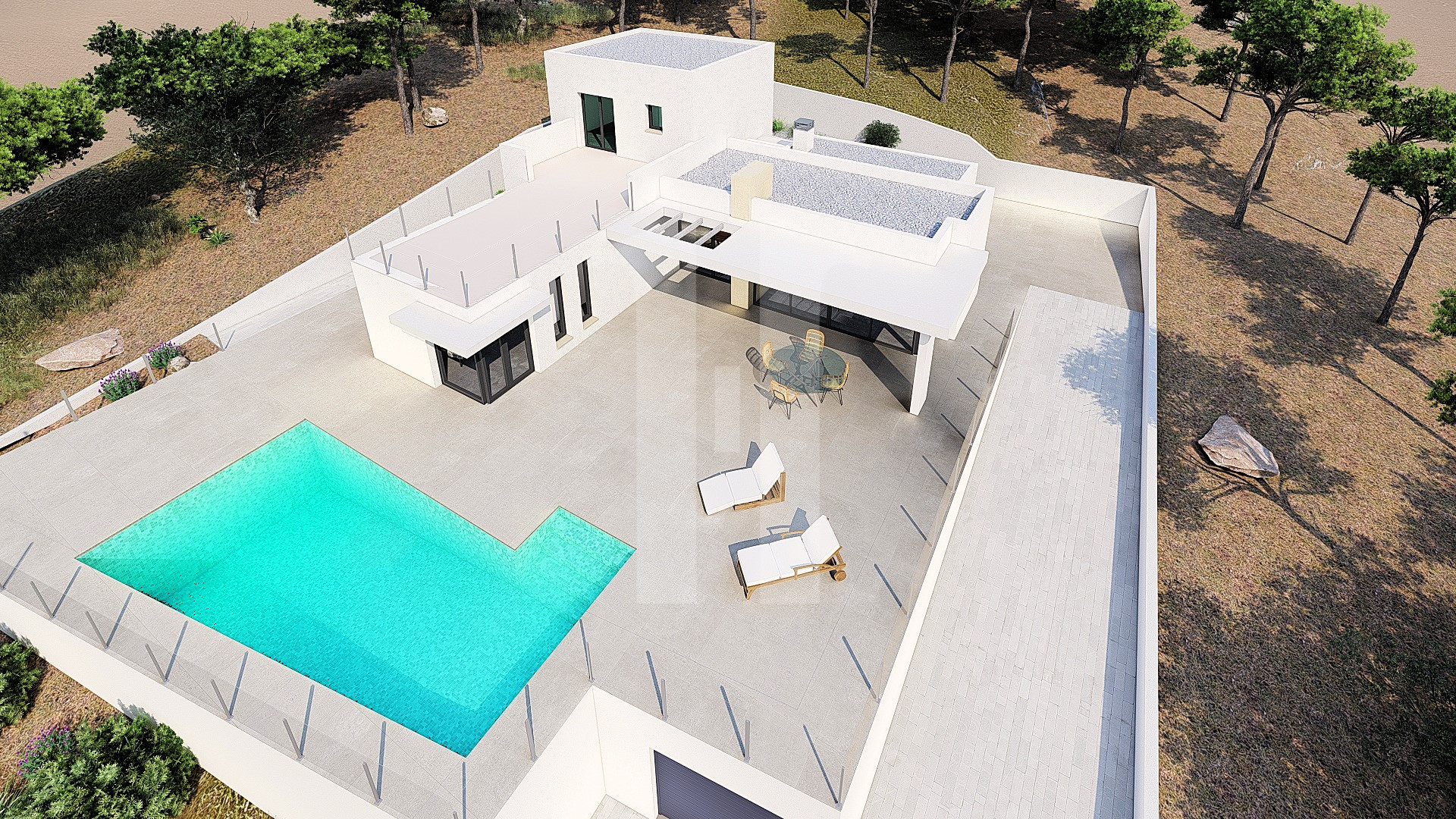 Actualmente en fase de construcción y con fecha estimada de entrega para febrero de 2024, esta impresionante residencia, diseñada con influencias mediterráneas e ibicencas, se distingue por sus líneas suaves y curvas, resaltadas por esquinas redondeadas, vigas de madera a la vista y techos abovedados, que evocan la belleza del paisaje mediterráneo. El techo de tejas de barro y las amplias ventanas con persianas aseguran una generosa entrada de luz natural, creando así un auténtico santuario de tranquilidad….