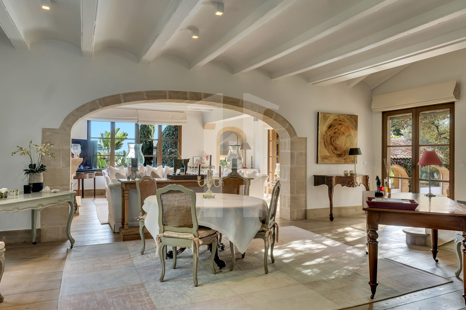 La zona de día se distribuye en varios salones, diseñados para disfrutar tanto de momentos