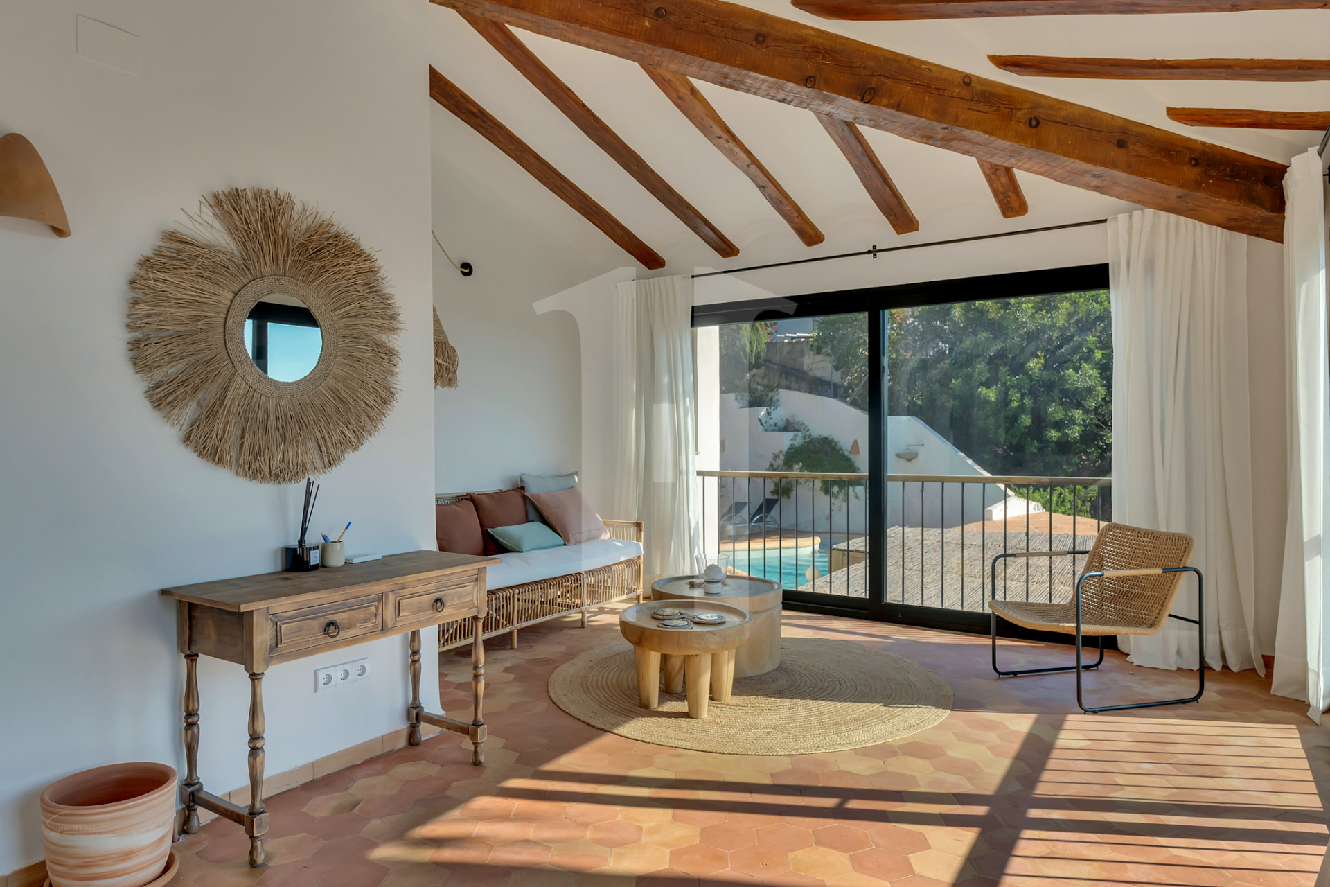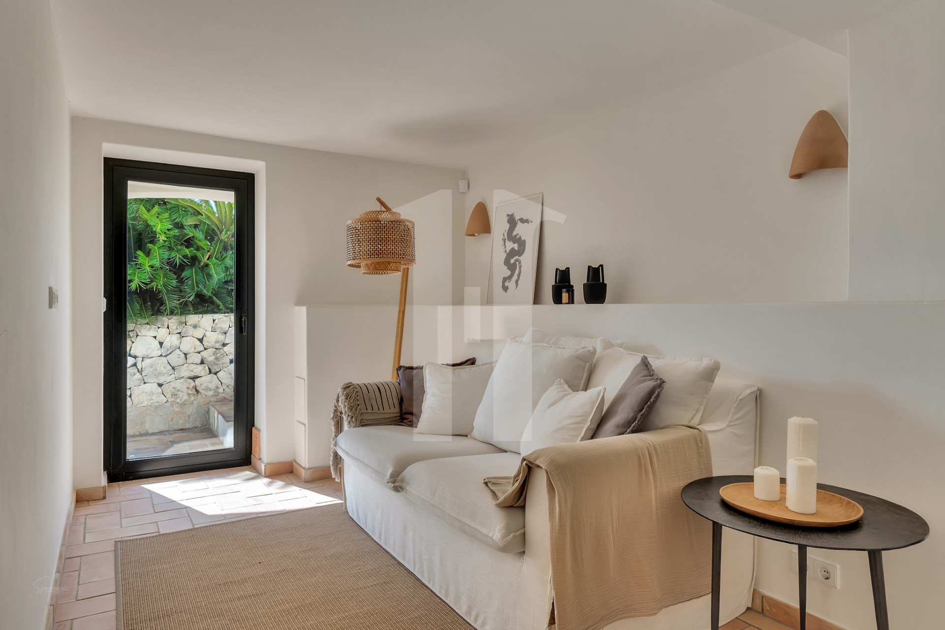 Se pone a la venta una espectacular villa en venta en Javea de diseño contemporáneo, situada en la codiciada Urbanización Puchol en Javea, completamente renovada bajo la dirección de la prestigiosa decoradora Jessica Bataille. A solo unos minutos del casco histórico de Jávea, esta exclusiva propiedad ofrece impresionantes vistas panorámicas de 180° sobre la bahía y el valle, con una orientación sur que garantiza una luminosidad excepcional durante todo el día.