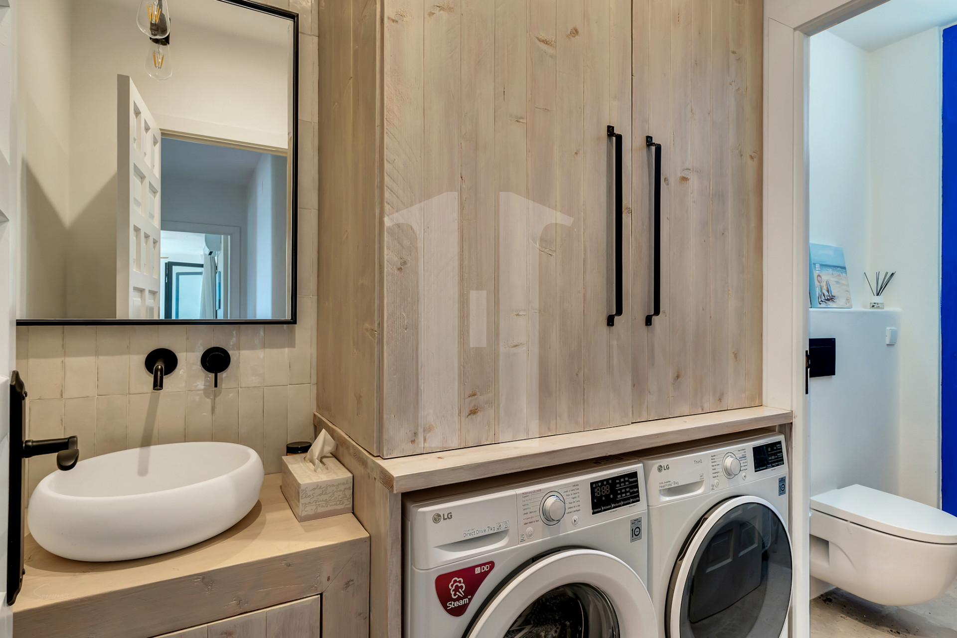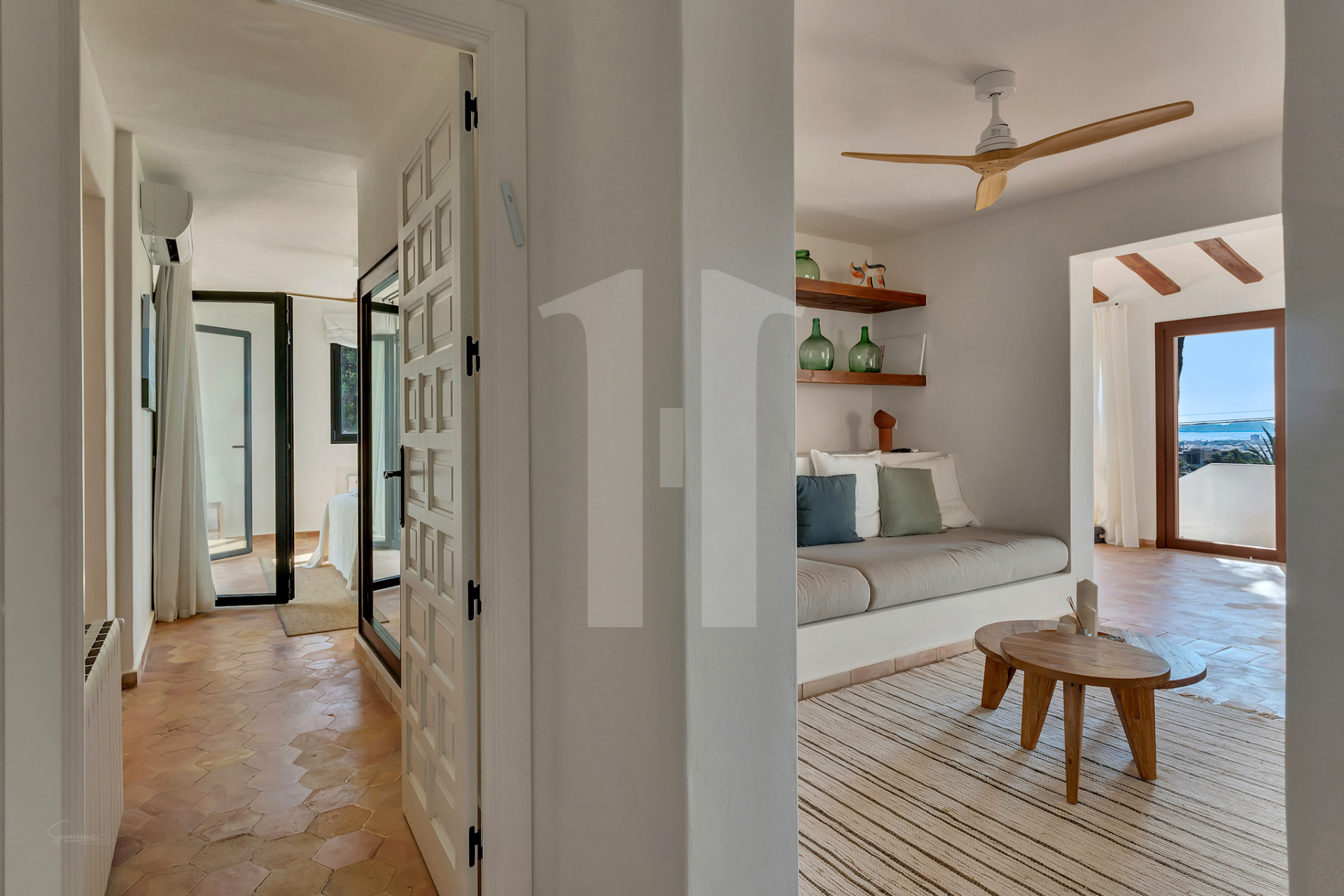 En la planta principal, un espacioso salón con chimenea y grandes ventanales ofrece vistas ininterrumpidas de la bahía de Jávea. Dos salas adicionales proporcionan rincones perfectos para el descanso y la privacidad. El comedor, integrado con una moderna cocina abierta, tiene acceso directo a una amplia terraza exterior. La suite principal, equipada con vestidor y baño en suite, también se abre a la piscina. Este nivel incluye además un aseo de cortesía y un práctico lavadero.